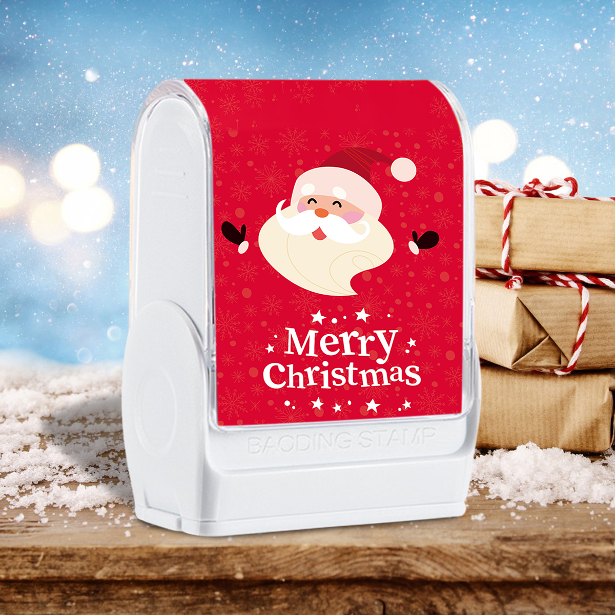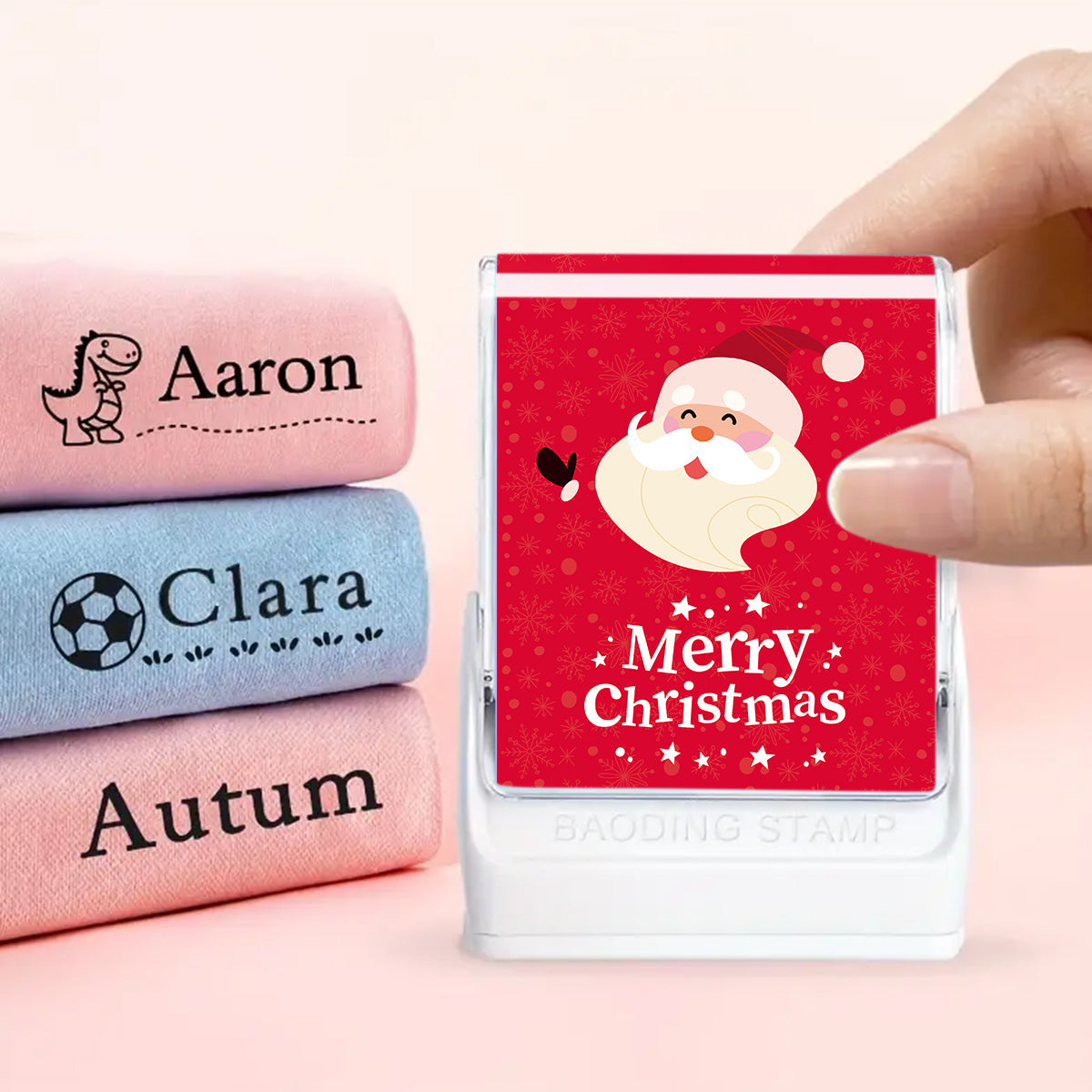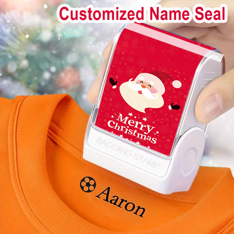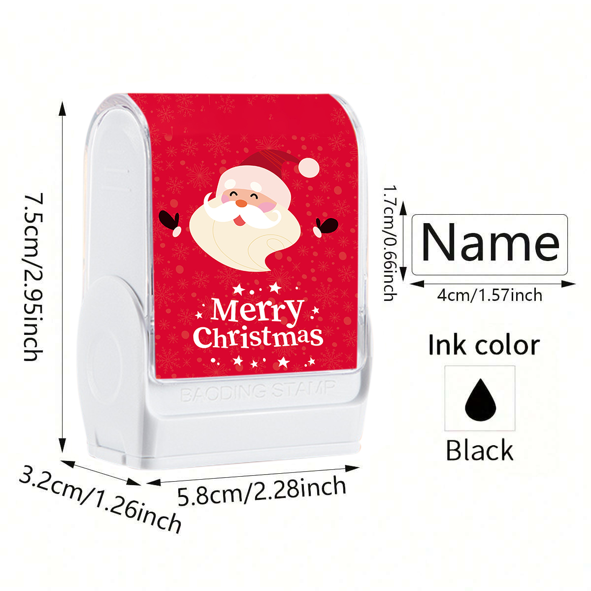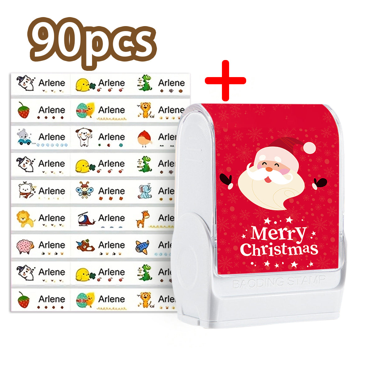 (90PCS Stickers + 1PC Stamp Set)Christmas Custom Name Stamp & Stickers Kit - Waterproof Personalized Name Stamp for Kids' Clothing, Stationery - Santa Design Self-Inking Name Seal for DIY Gift & Item Identification-yy