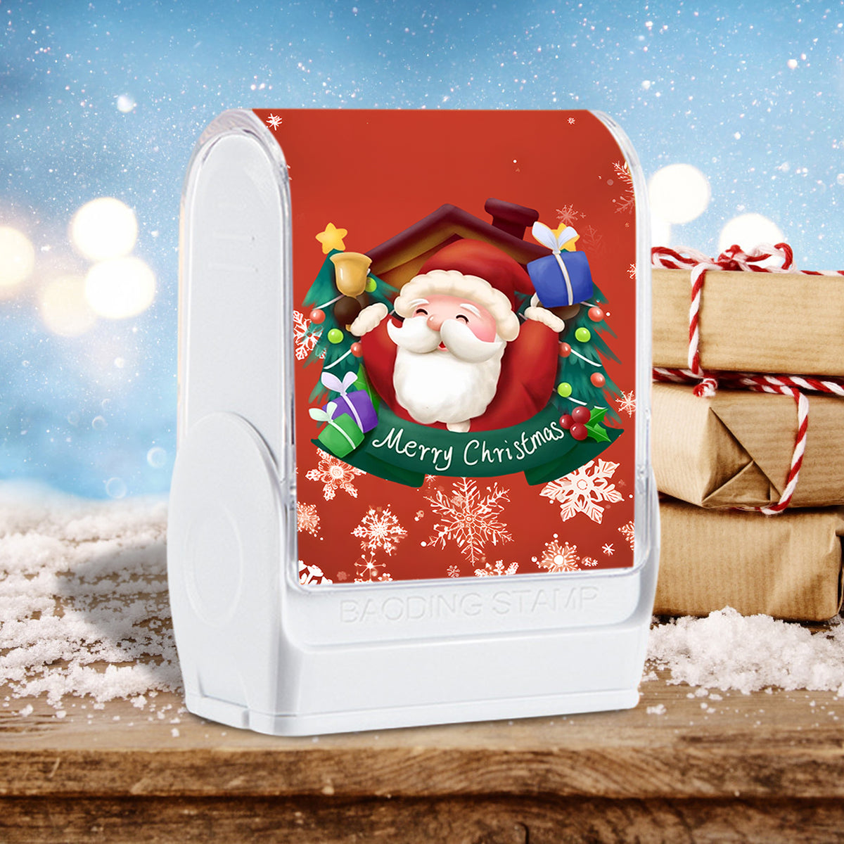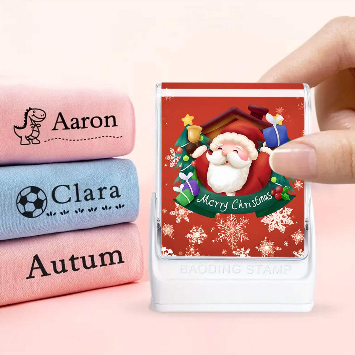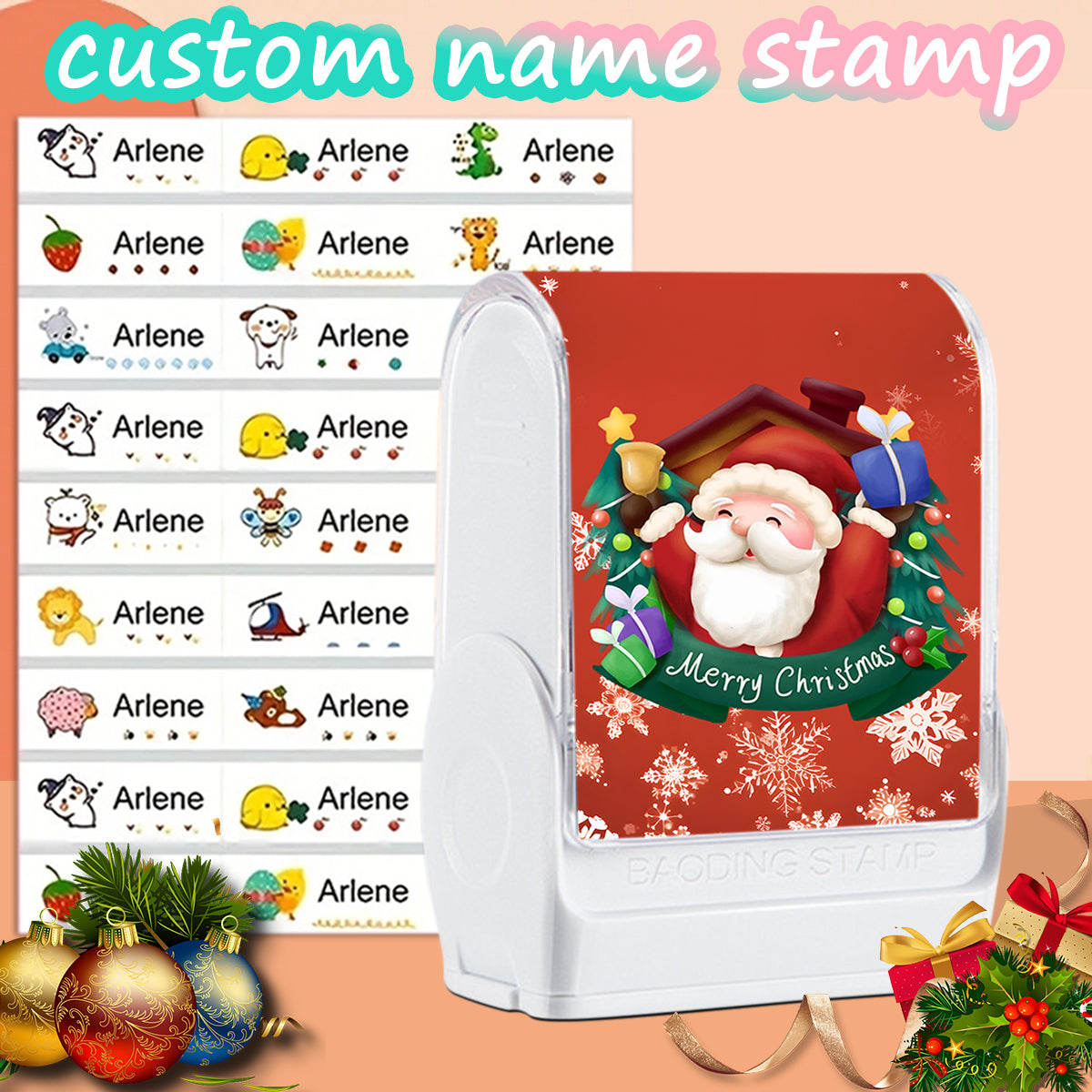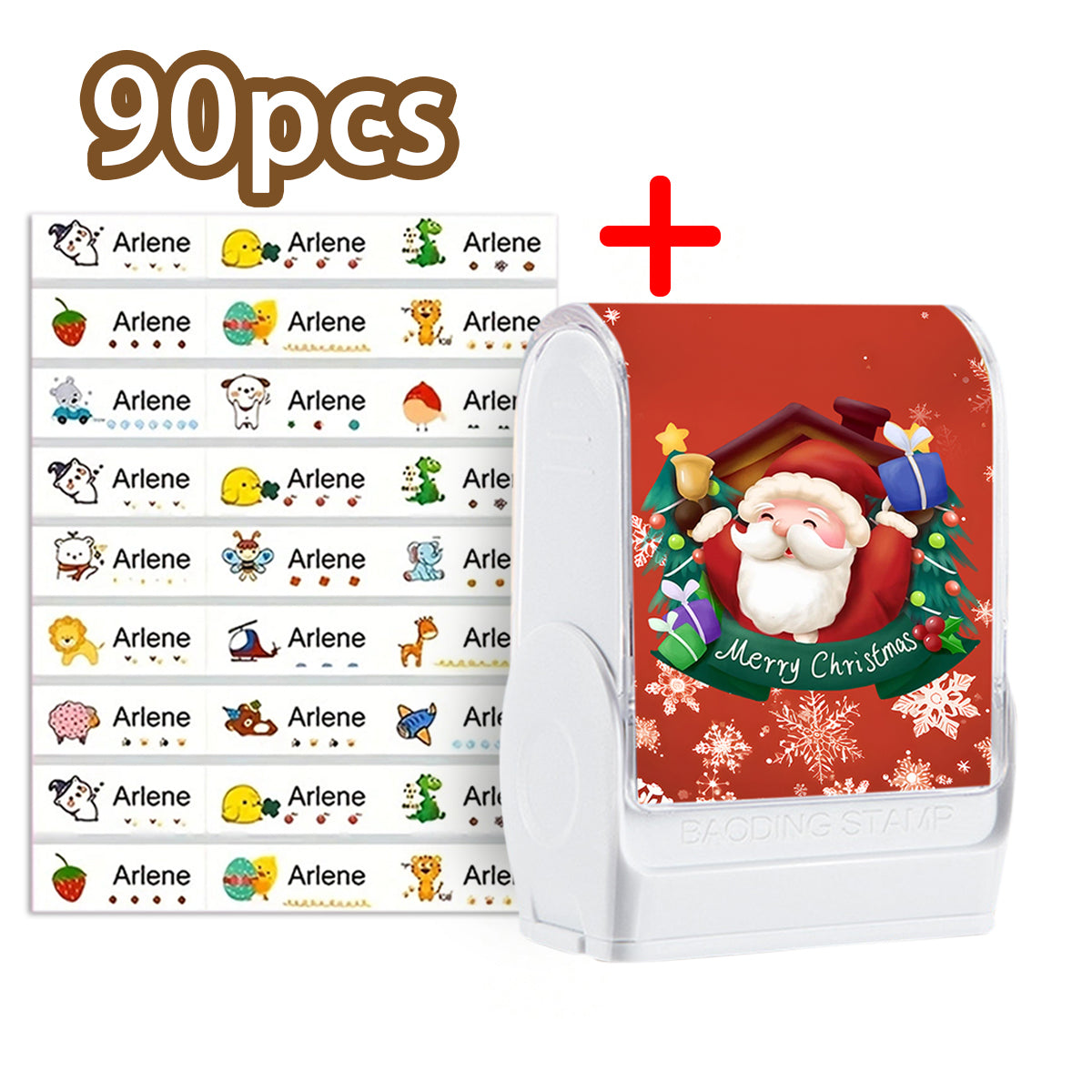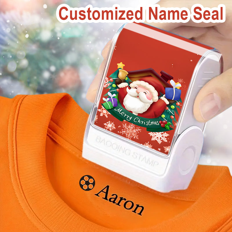 (90PCS Stickers + 1PC Stamp Set)Christmas Santa Custom Name Stamp Kit - Waterproof Self-Inking Personalized Stamp for Kids' Clothing, Stationery - DIY Gift & Item Identification Seal