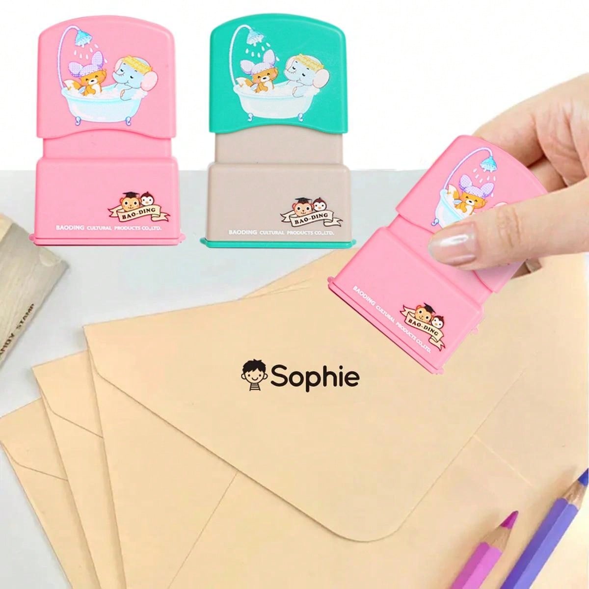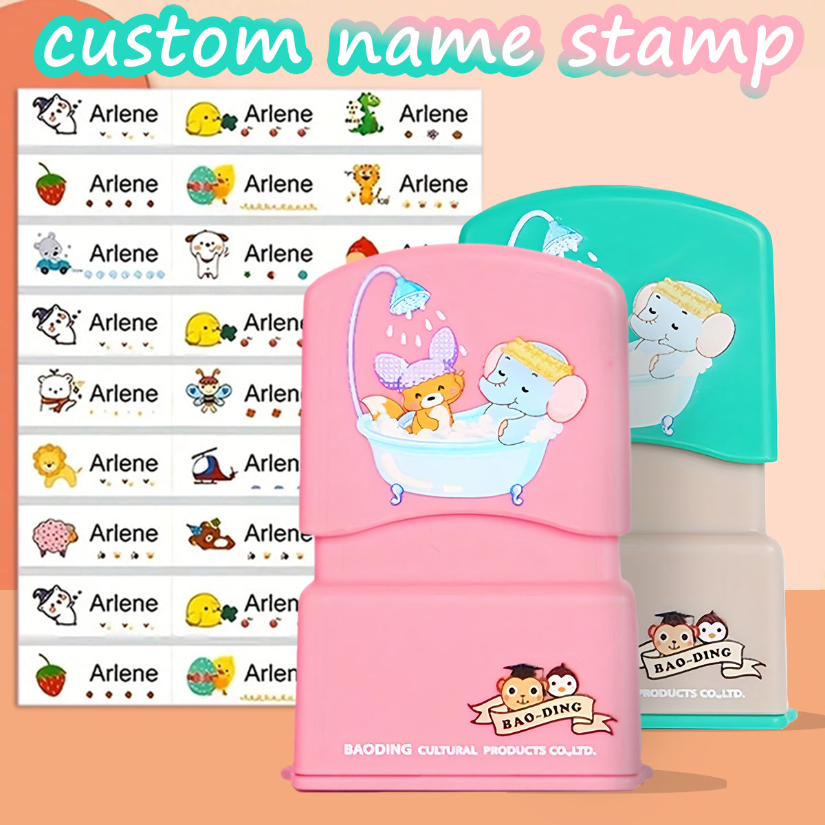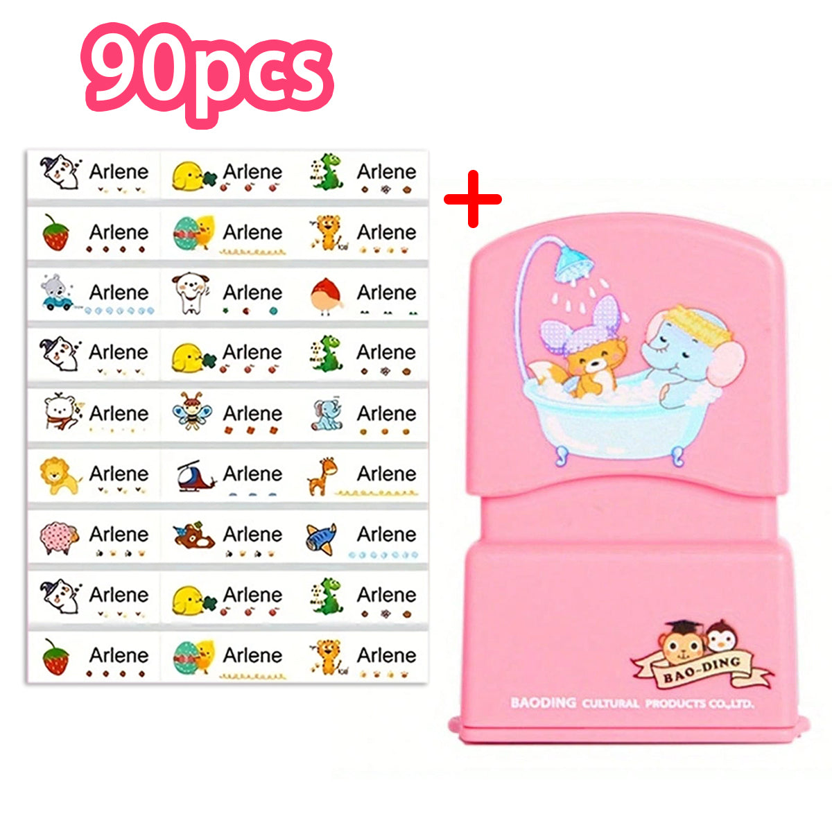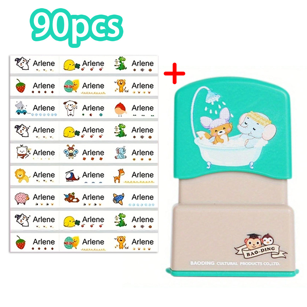 (90PCS stickers+1PC stamp set)Personalized Waterproof Stamp for Clothing, Personalized Ink Pad Stamps, Children's Name stamp, Men and Women
