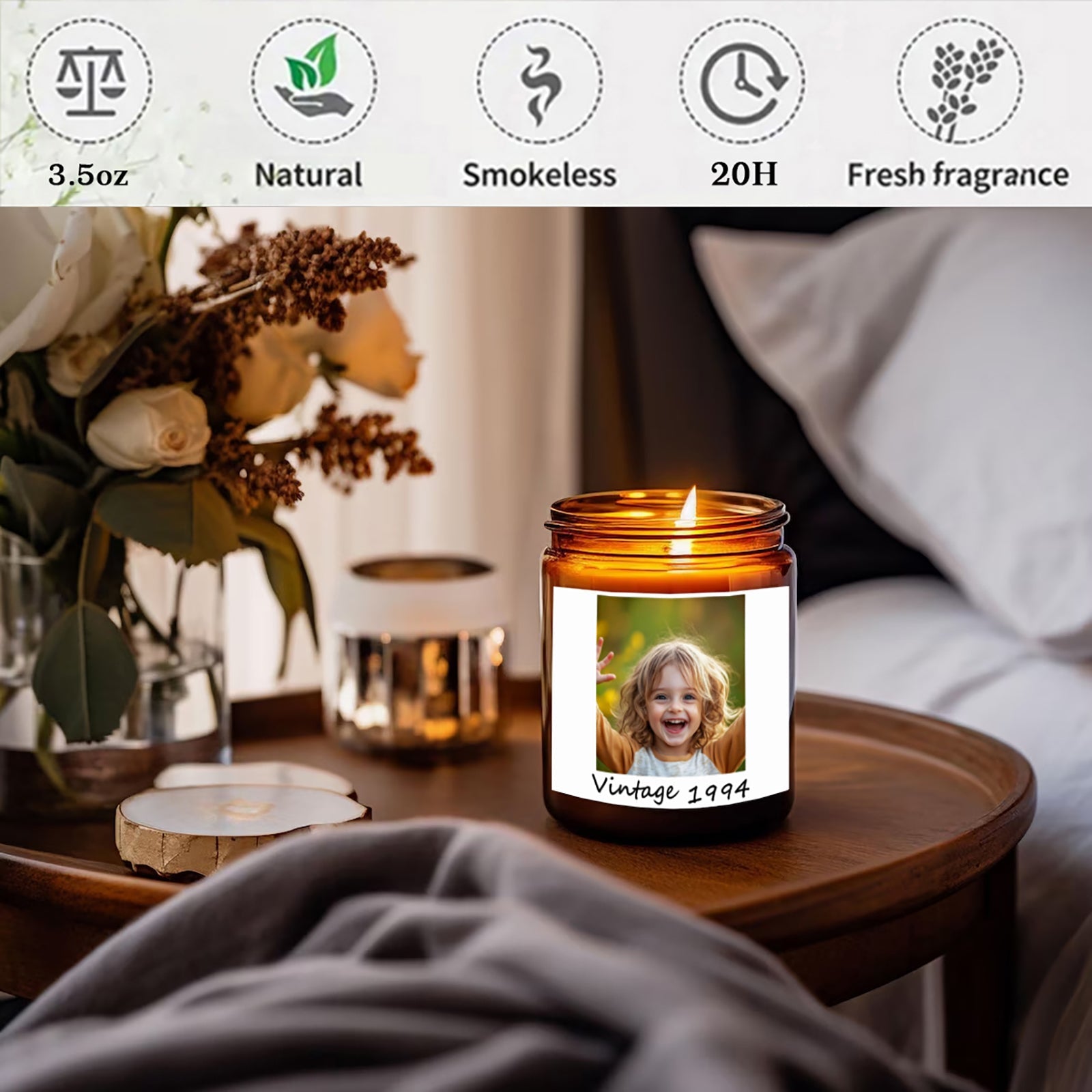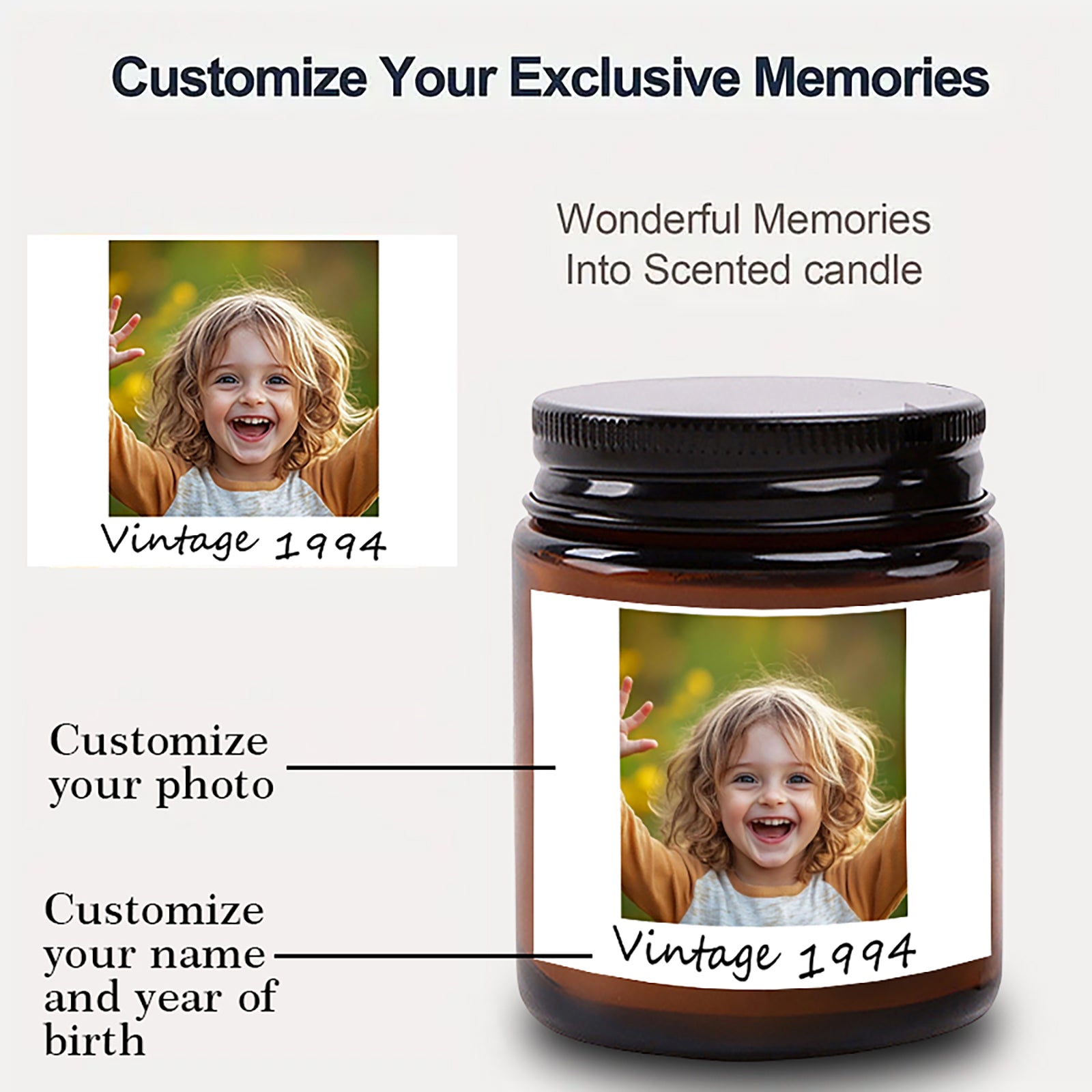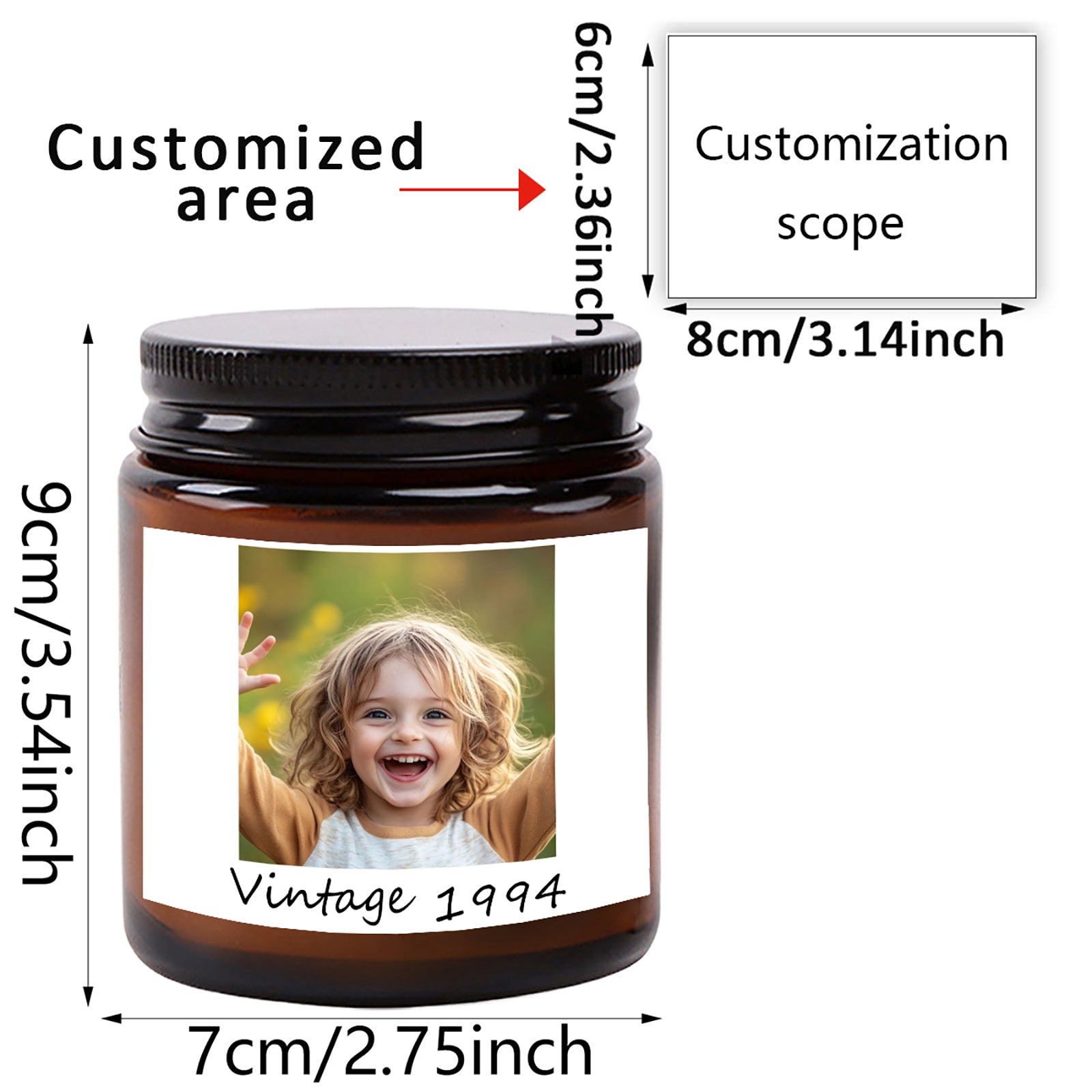 1 personalized candle - customized photos and text, transparent color can - long-lasting soy wax- wedding, Valentine's Day, birthday, bridesmaid gift - personalized souvenir gift, event candle