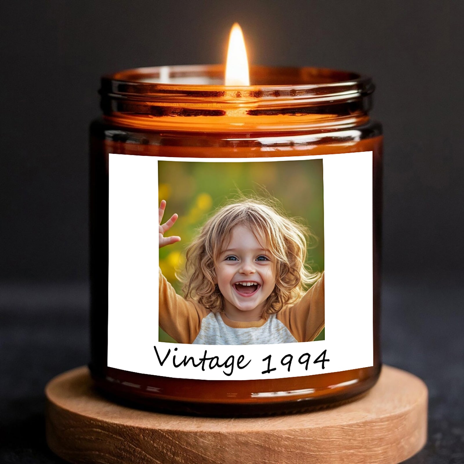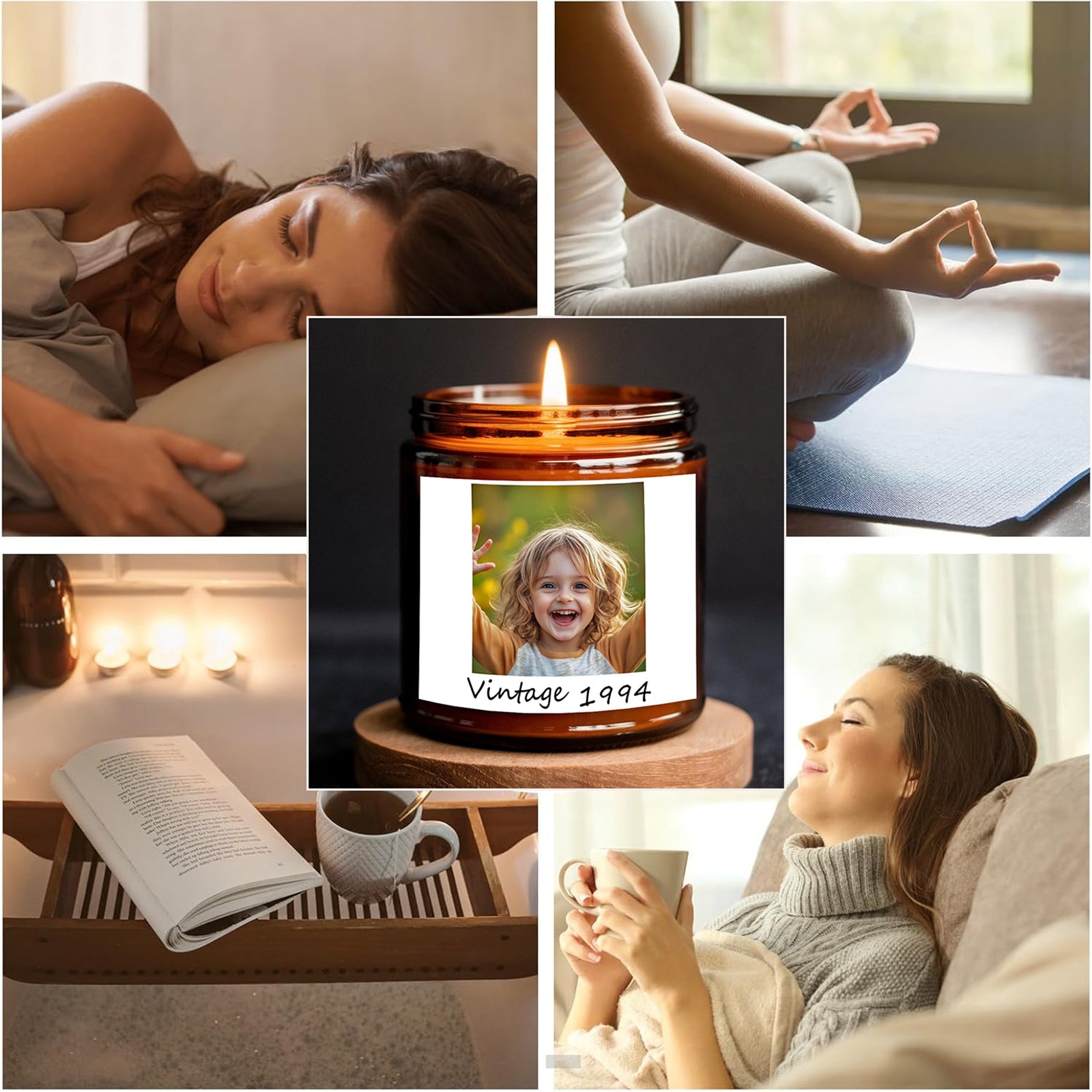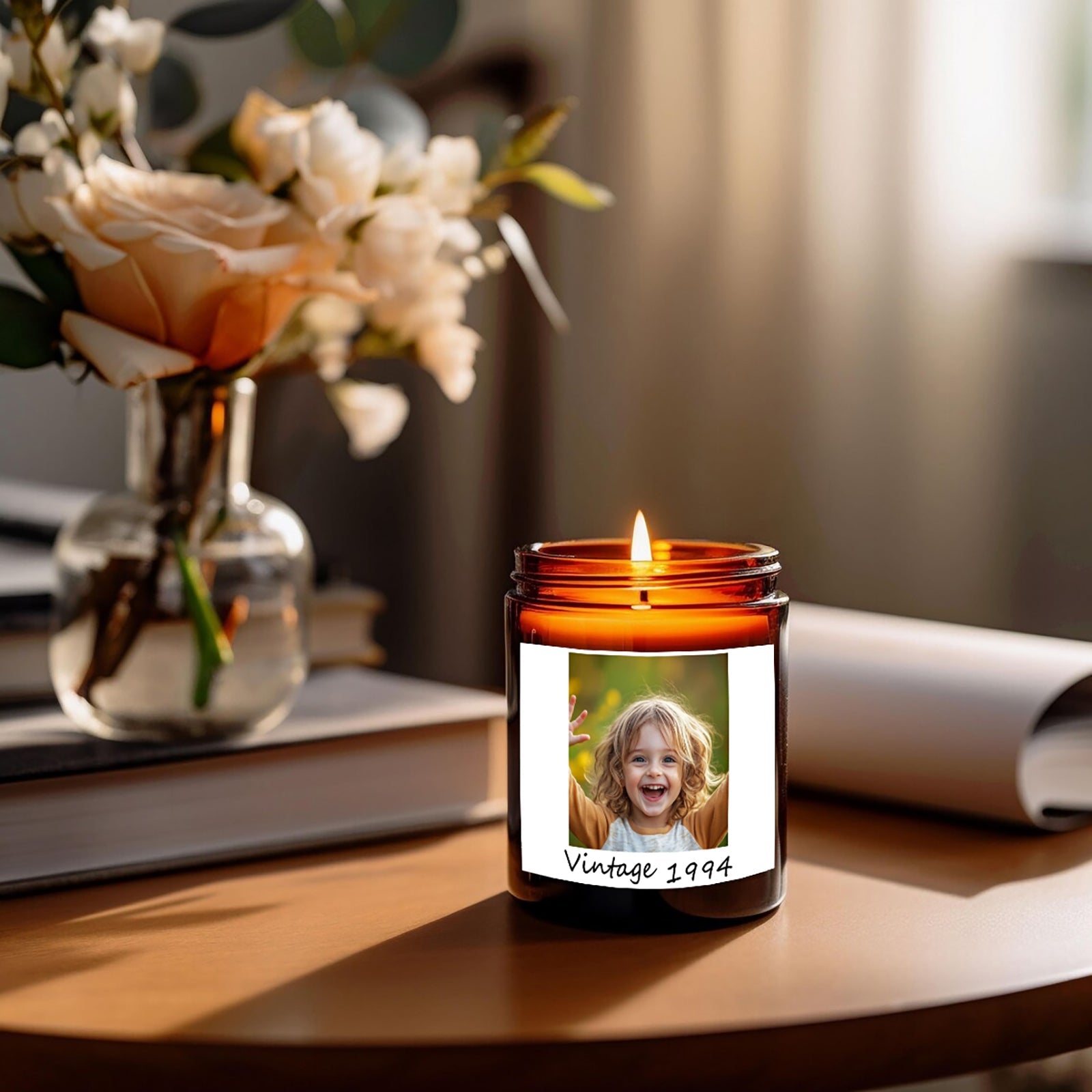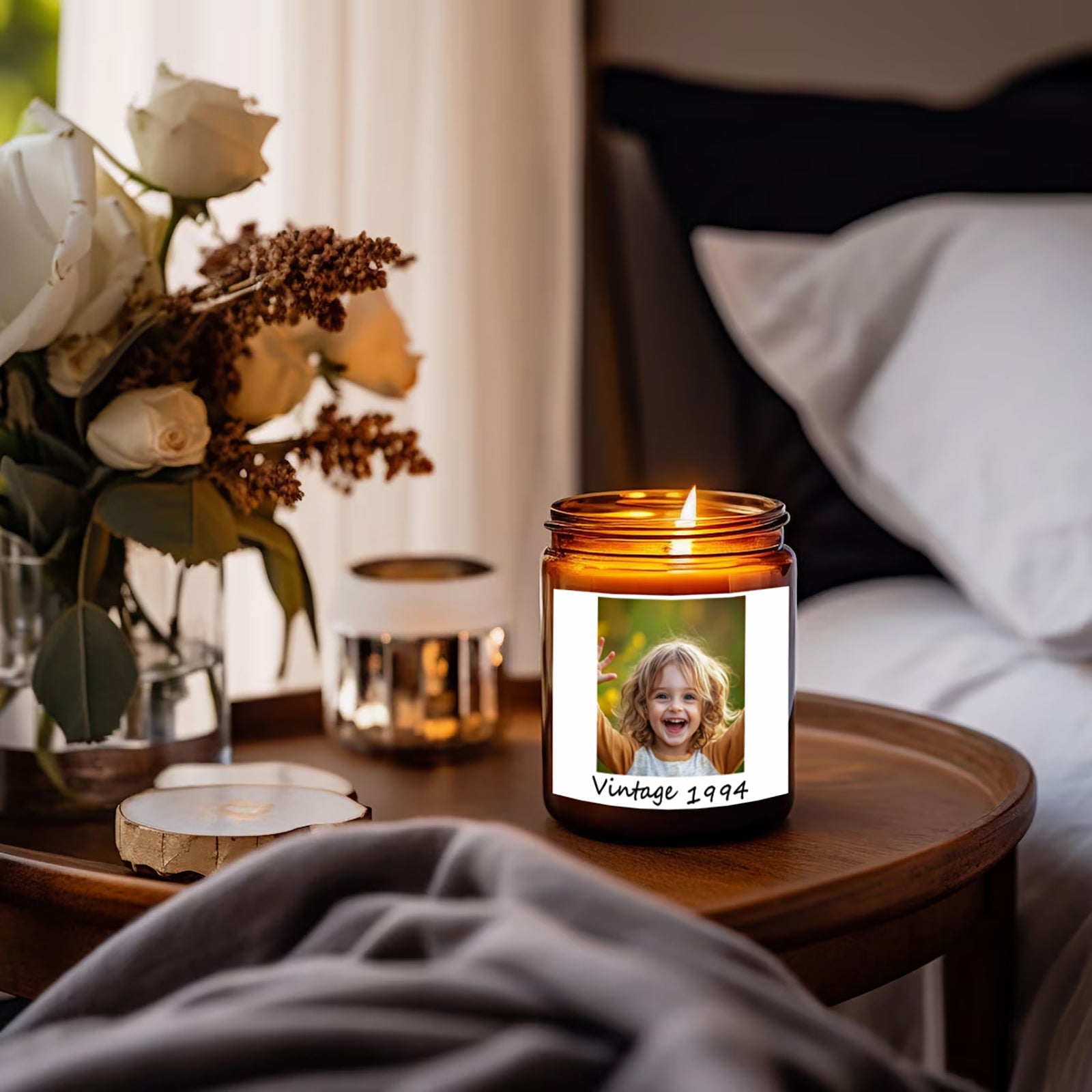 1 personalized candle - customized photos and text, transparent color can - long-lasting soy wax- wedding, Valentine's Day, birthday, bridesmaid gift - personalized souvenir gift, event candle
