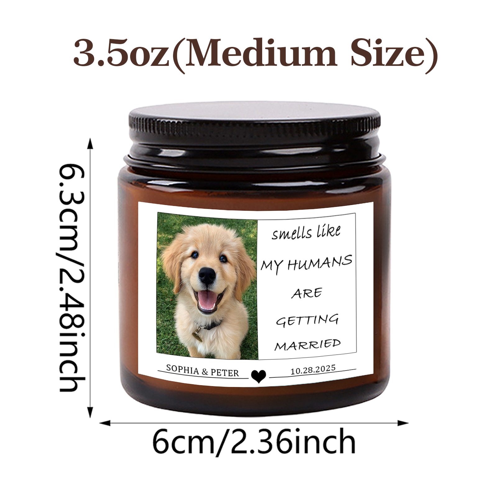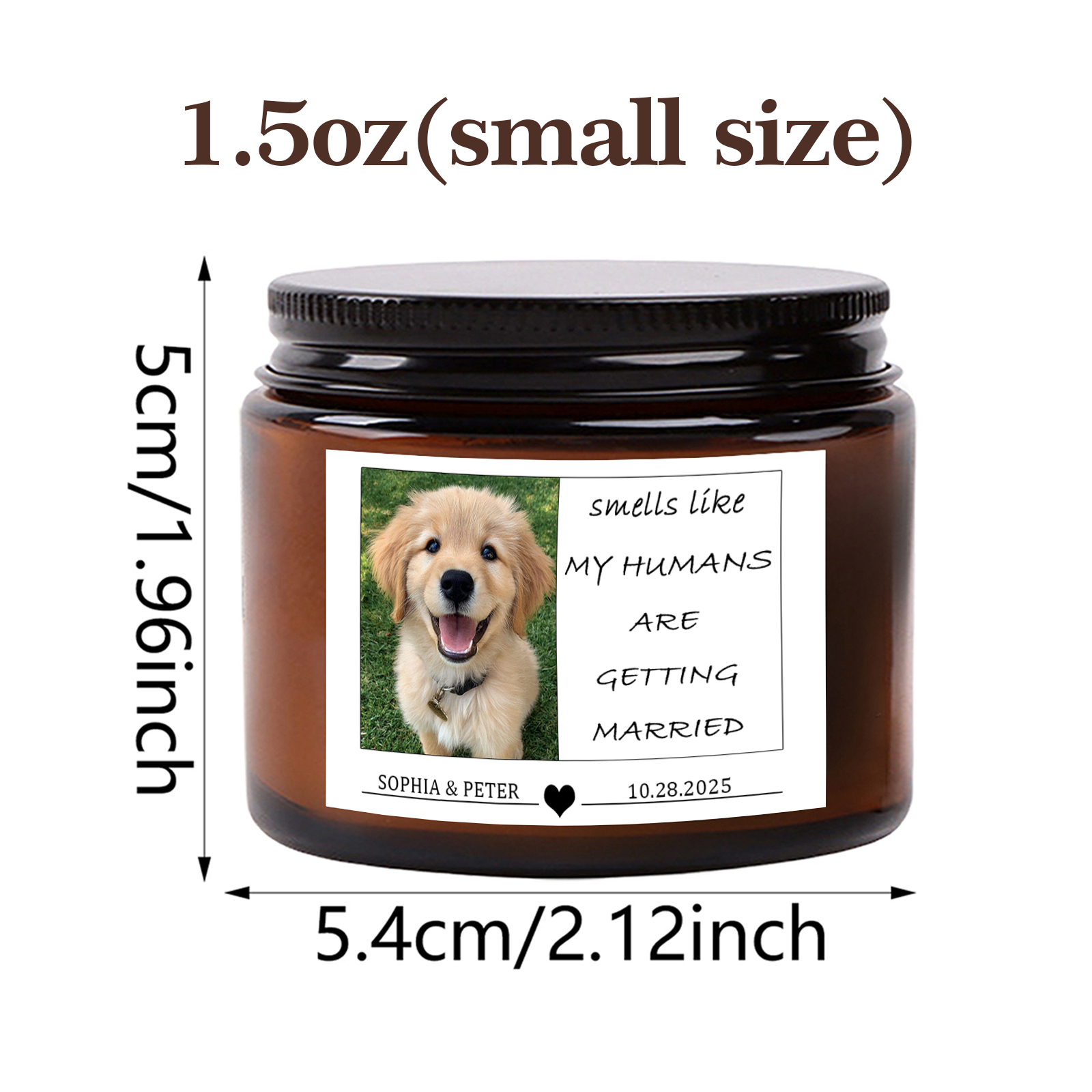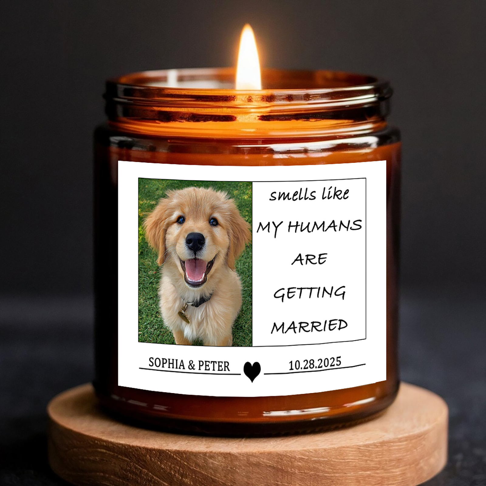 Personalized Pet Wedding Scented Candle - Custom Dog Photo & Message, "Smells Like My Humans Are Getting Married" - Smokeless Soy Wax in Amber Jar - Unique Wedding Gift for Pet Lovers, Couples