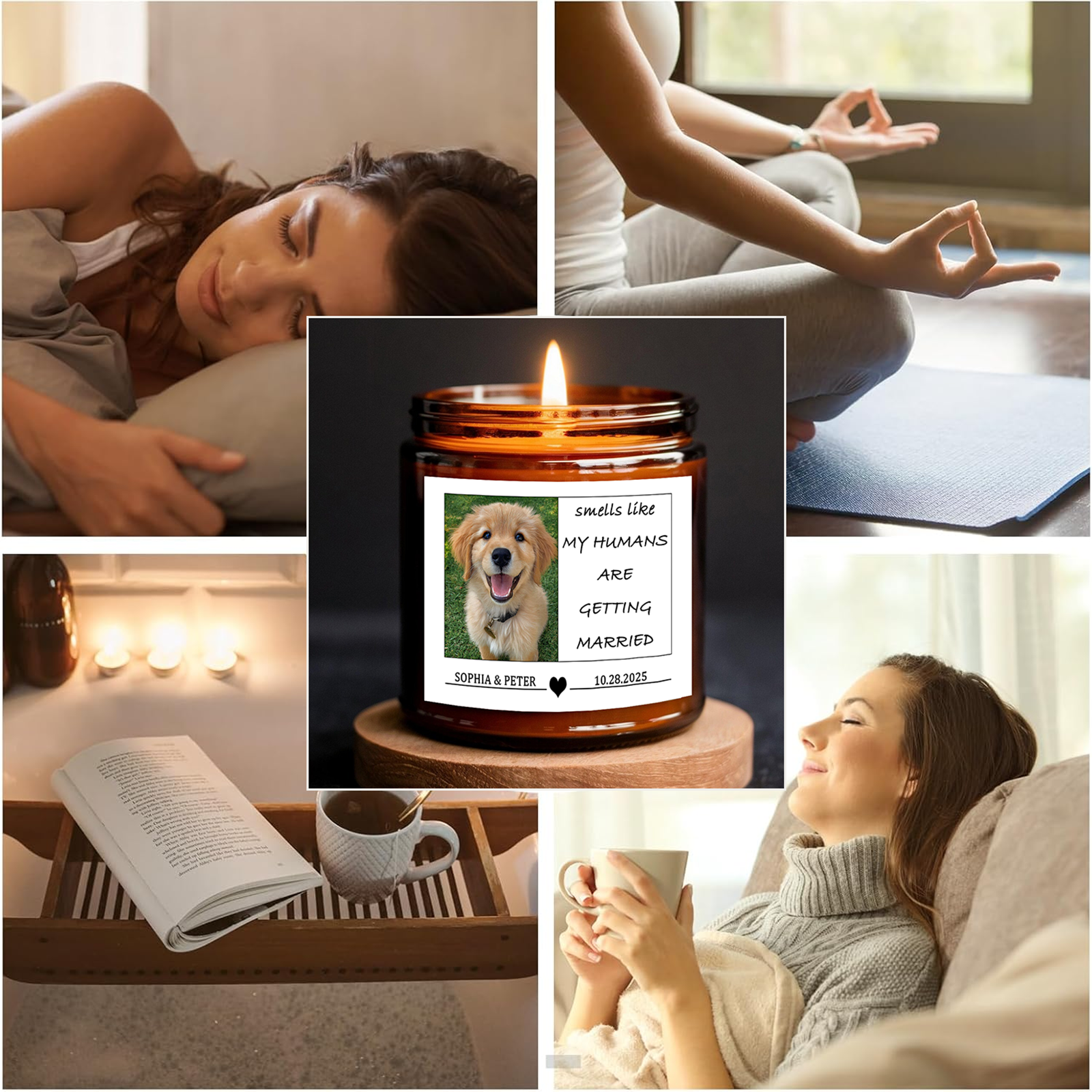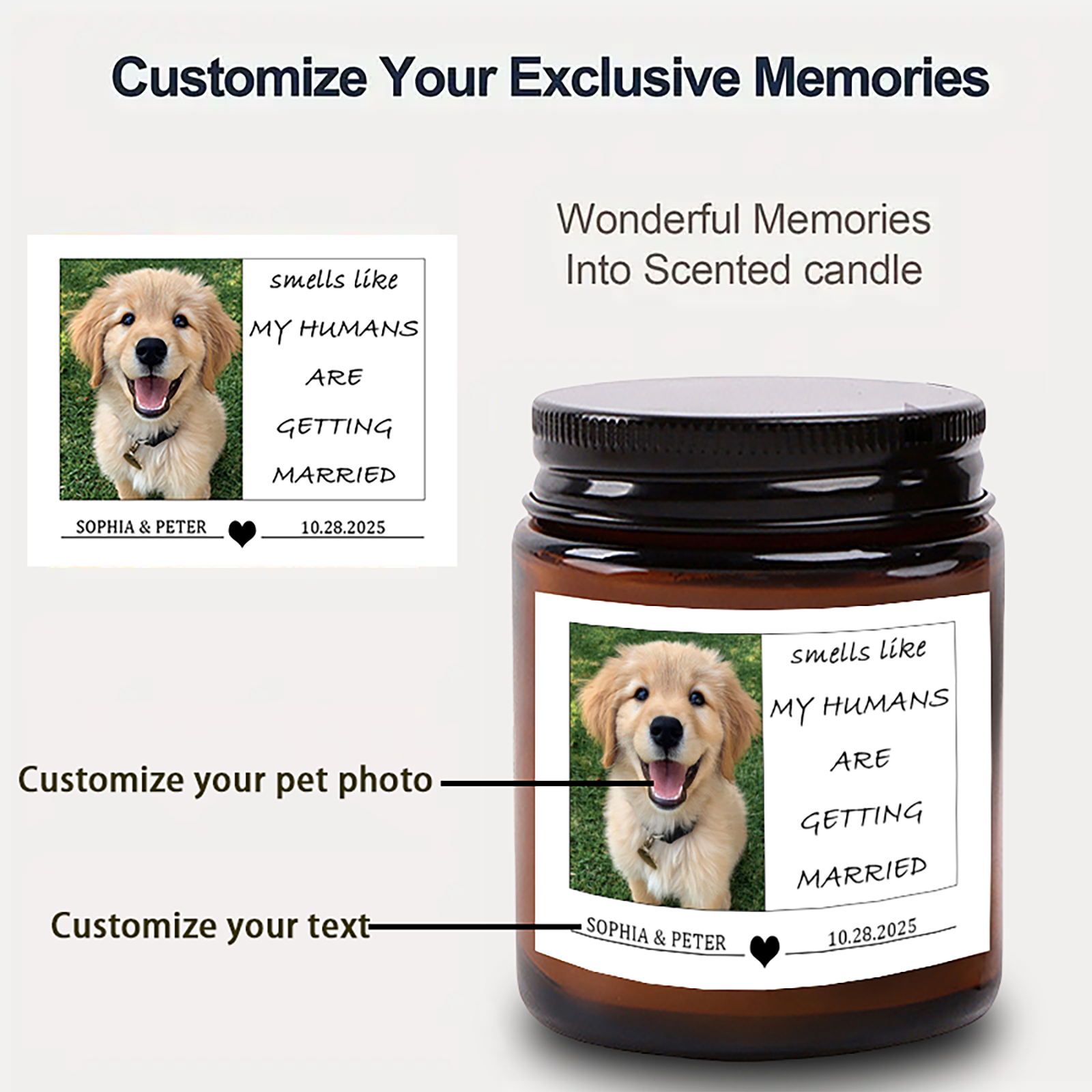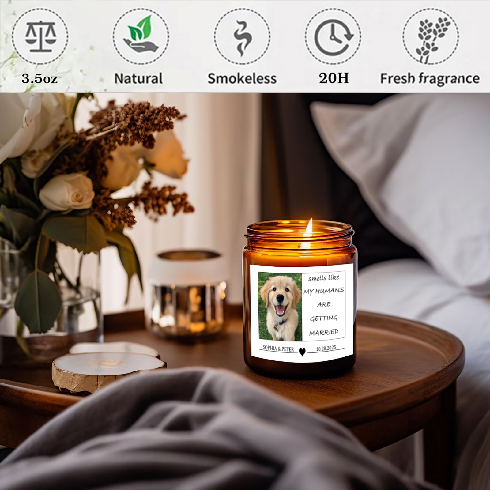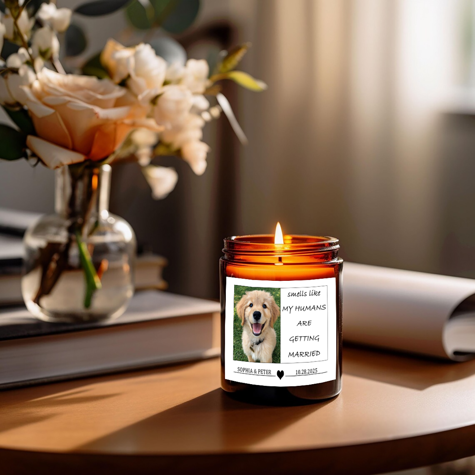 Personalized Pet Wedding Scented Candle - Custom Dog Photo & Message, "Smells Like My Humans Are Getting Married" - Smokeless Soy Wax in Amber Jar - Unique Wedding Gift for Pet Lovers, Couples