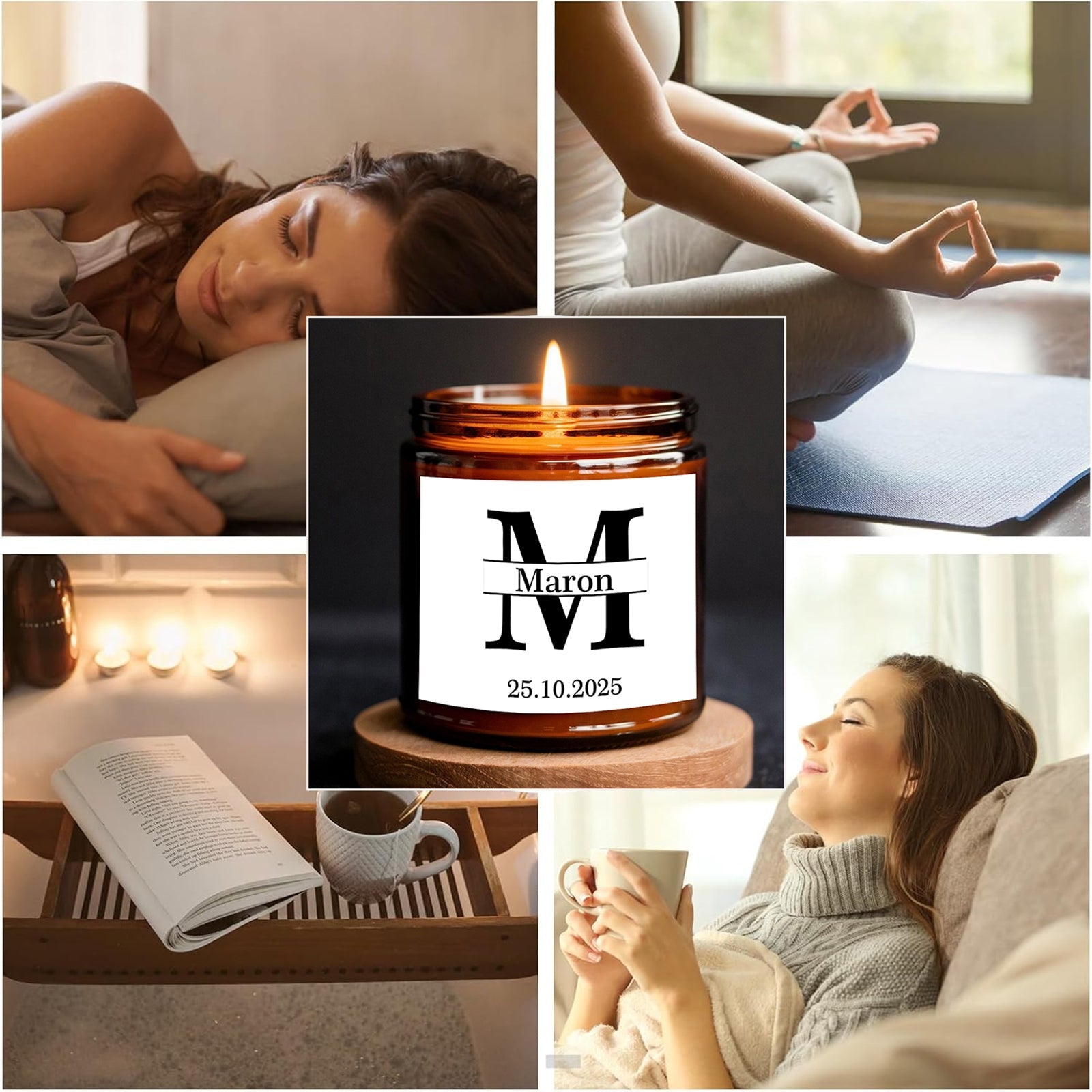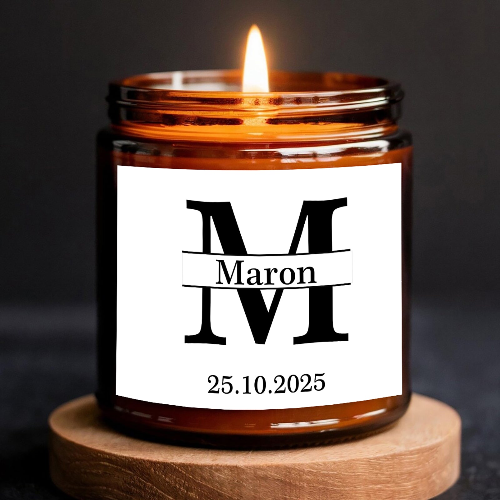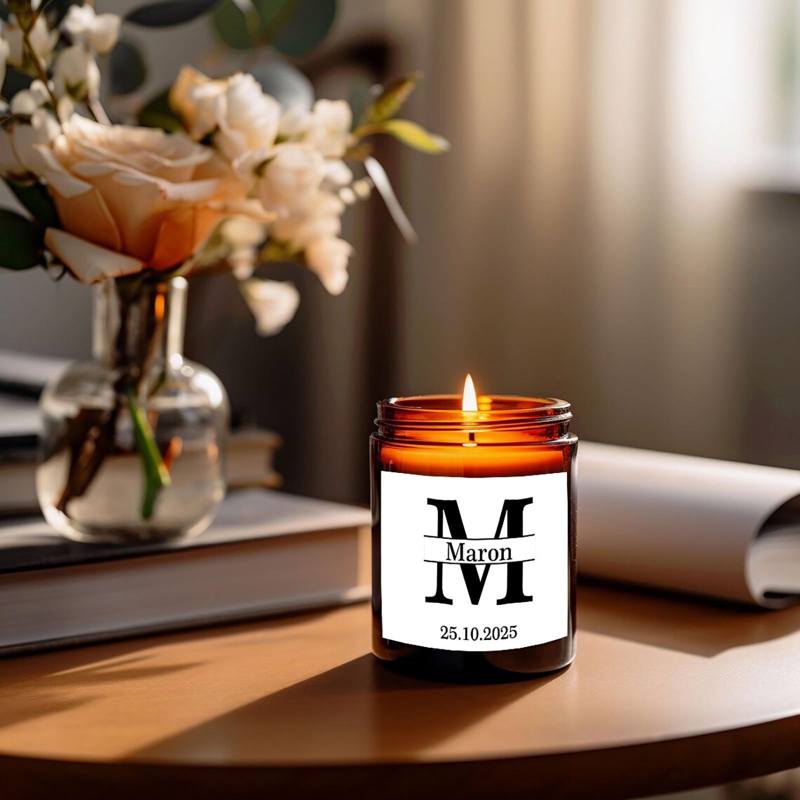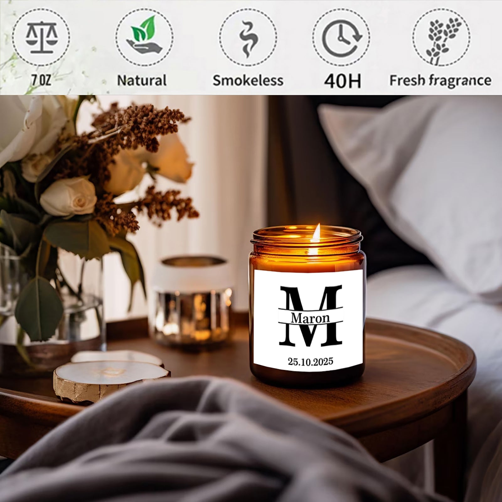 Personalized Scented Candle - Custom Name, Initial & Date, Classic Monogram Design - Smokeless Natural Wax in Amber Jar, 20H/40H Burn Time - Unique Gift for Birthday/Anniversary/Housewarming, Customizable for Him/Her
