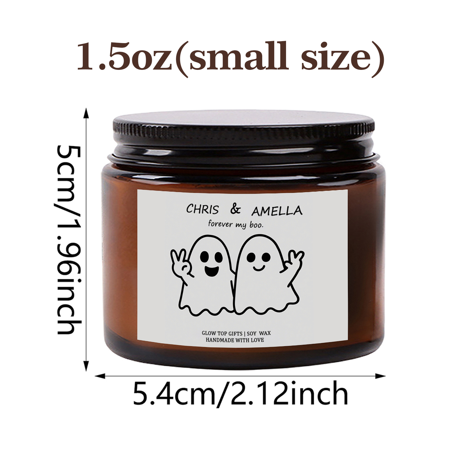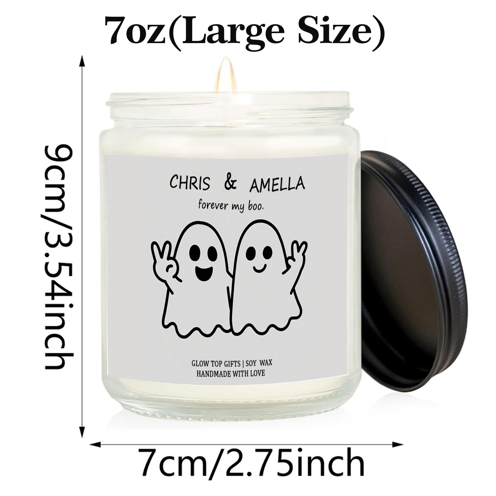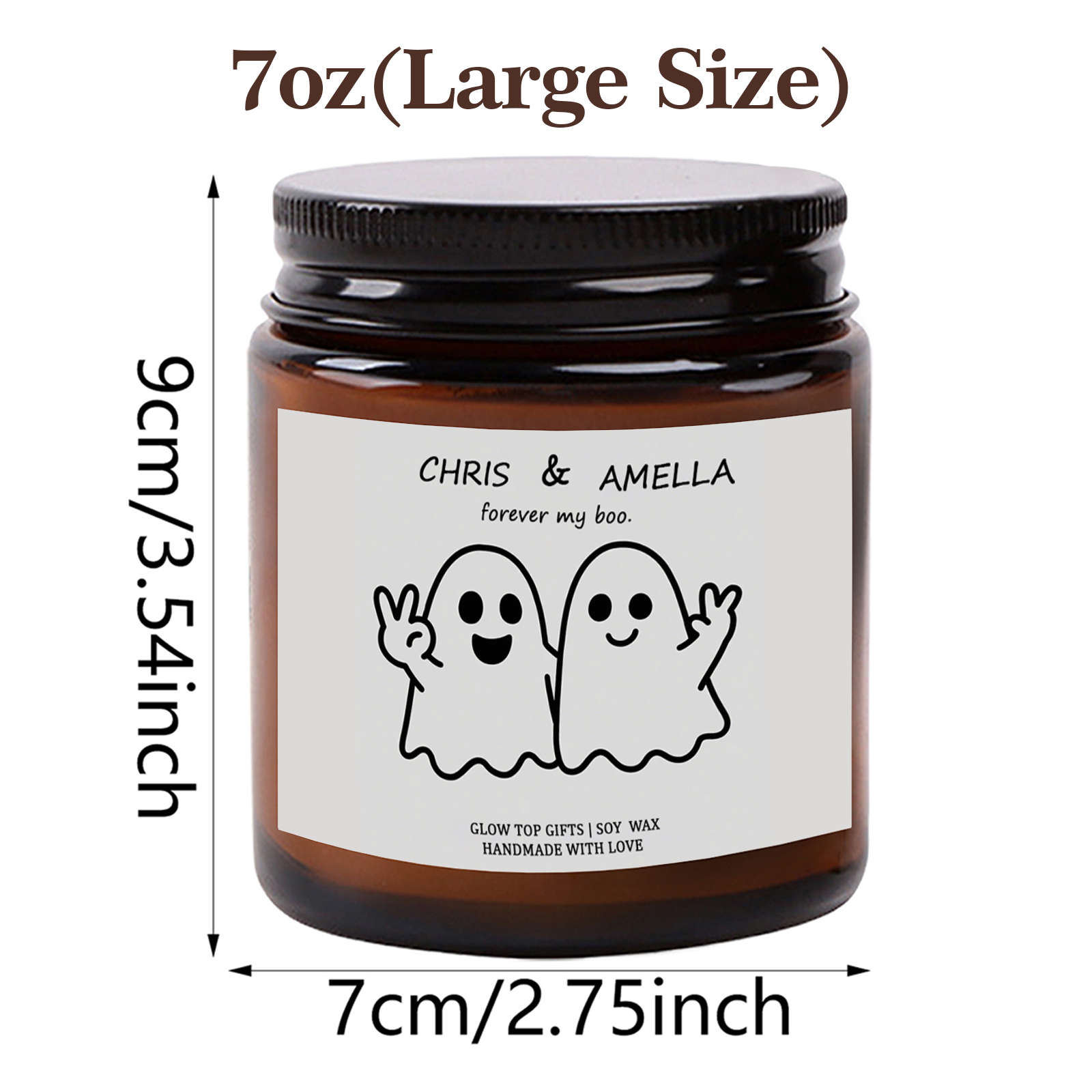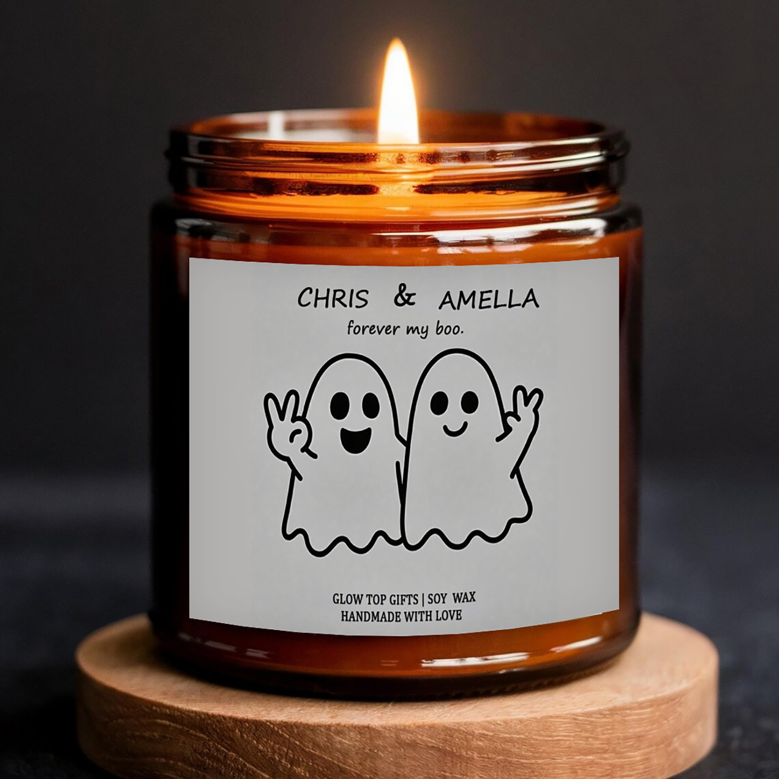Personalized Halloween Scented Candle - Custom Couple Names & Ghost Design, "Forever My Boo" Message - Smokeless Soy Wax in Amber Jar - Unique Gift for Couples, Halloween Lovers