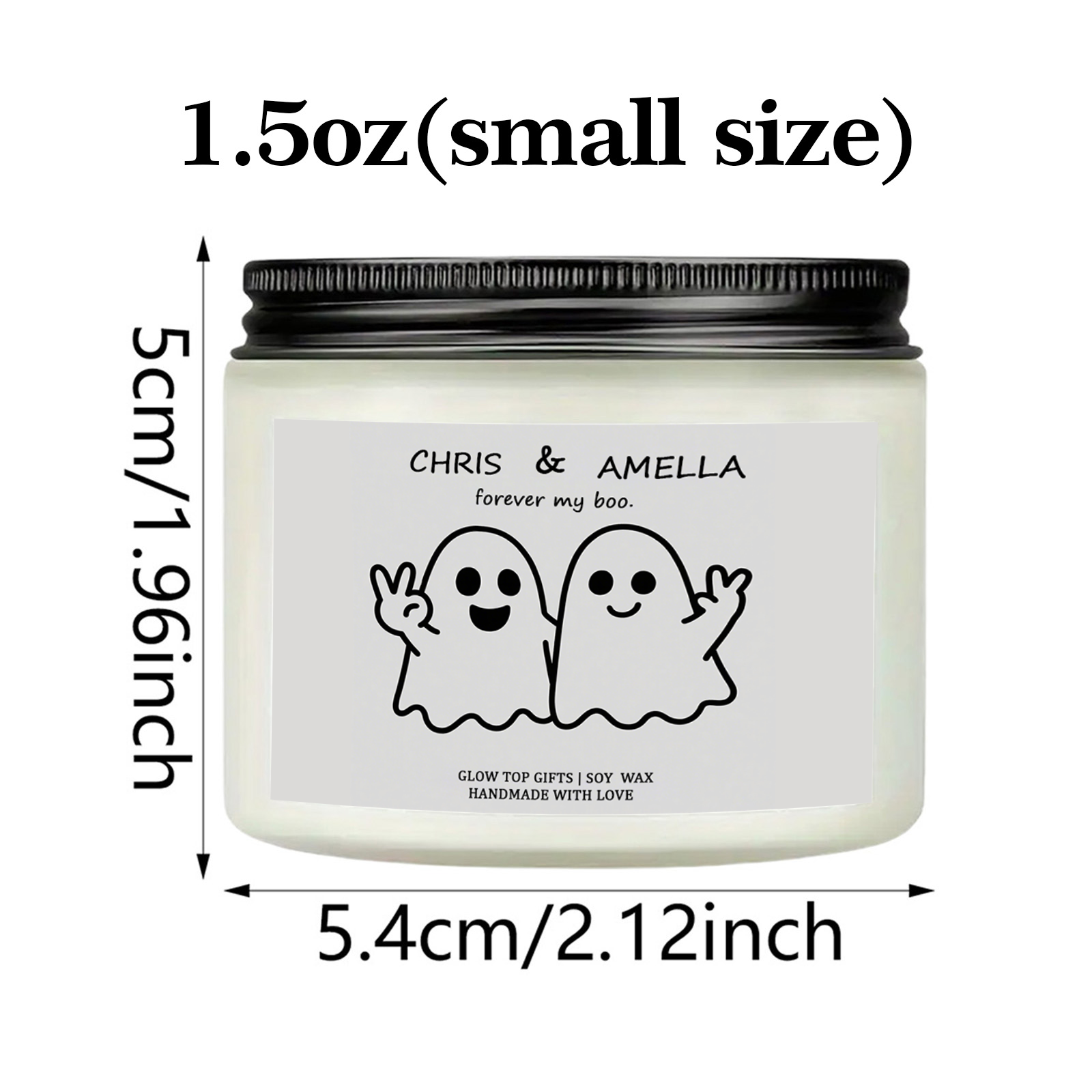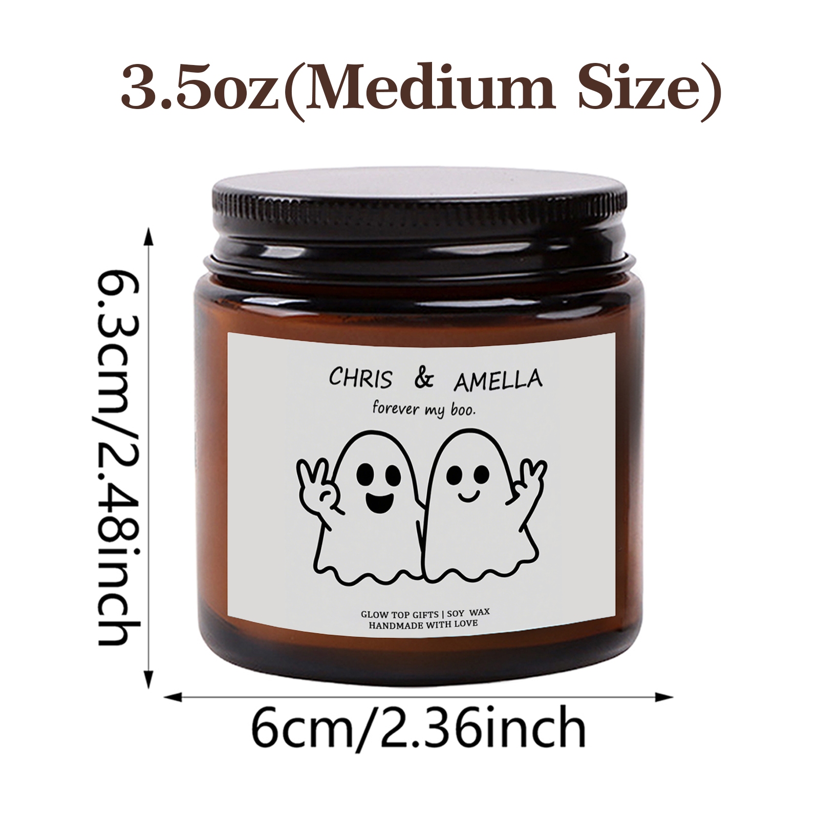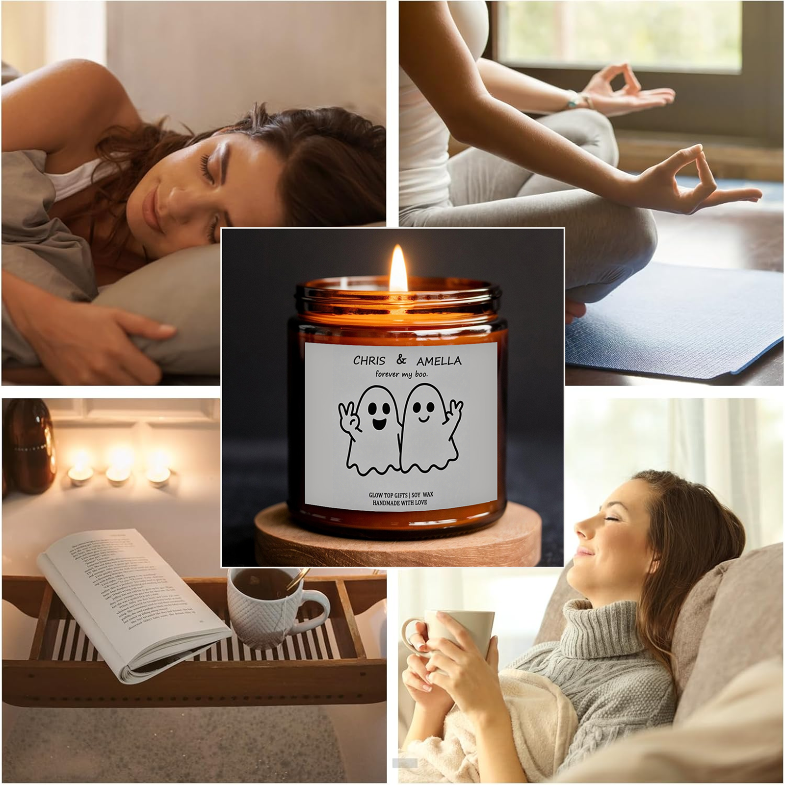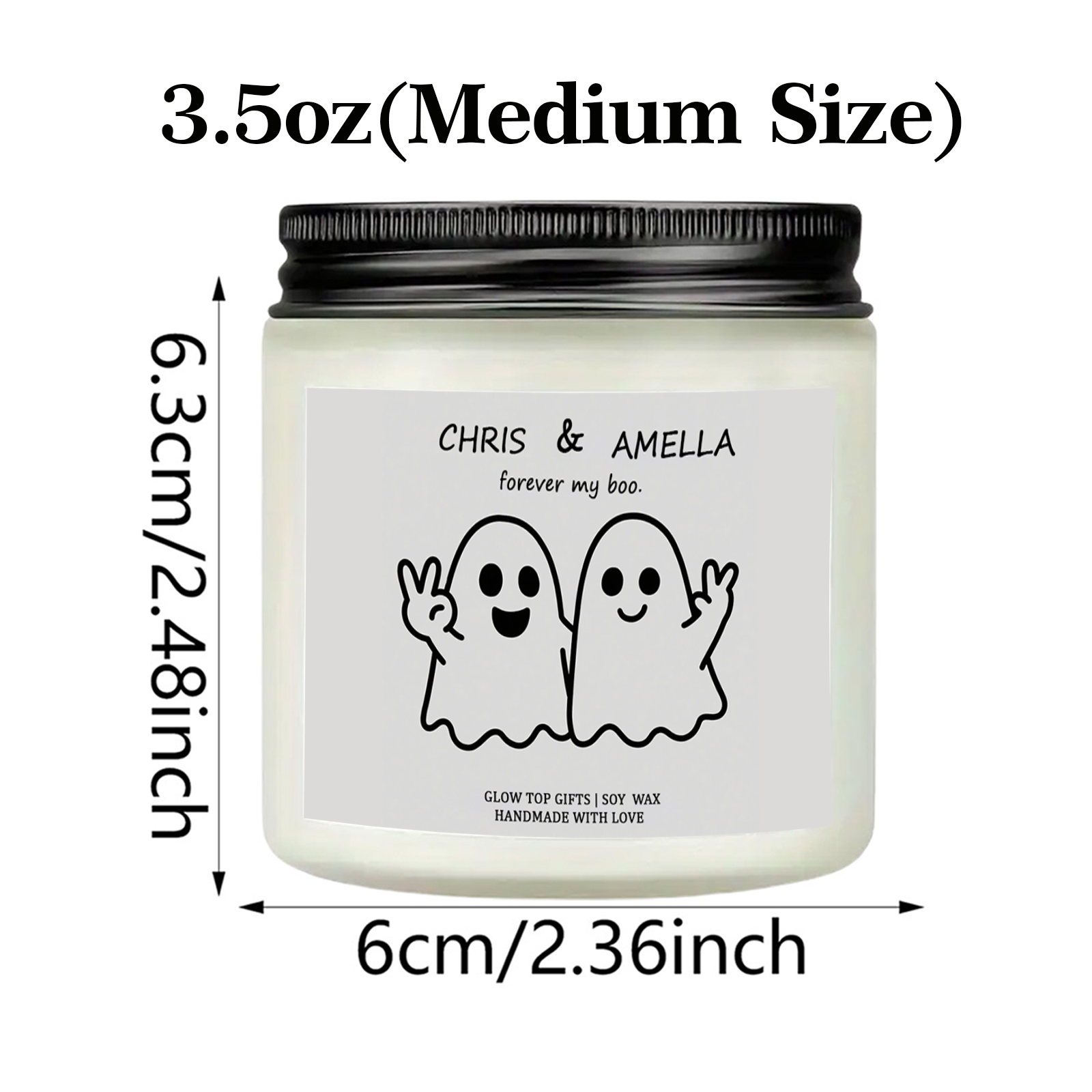 Personalized Halloween Scented Candle - Custom Couple Names & Ghost Design, "Forever My Boo" Message - Smokeless Soy Wax in Amber Jar - Unique Gift for Couples, Halloween Lovers