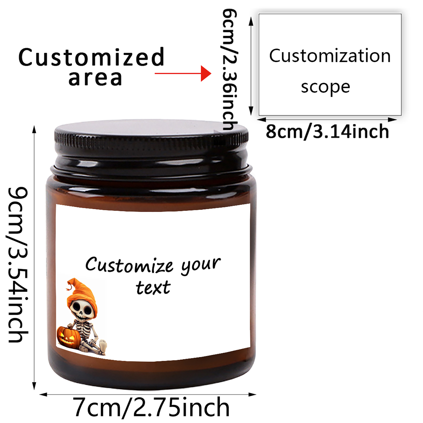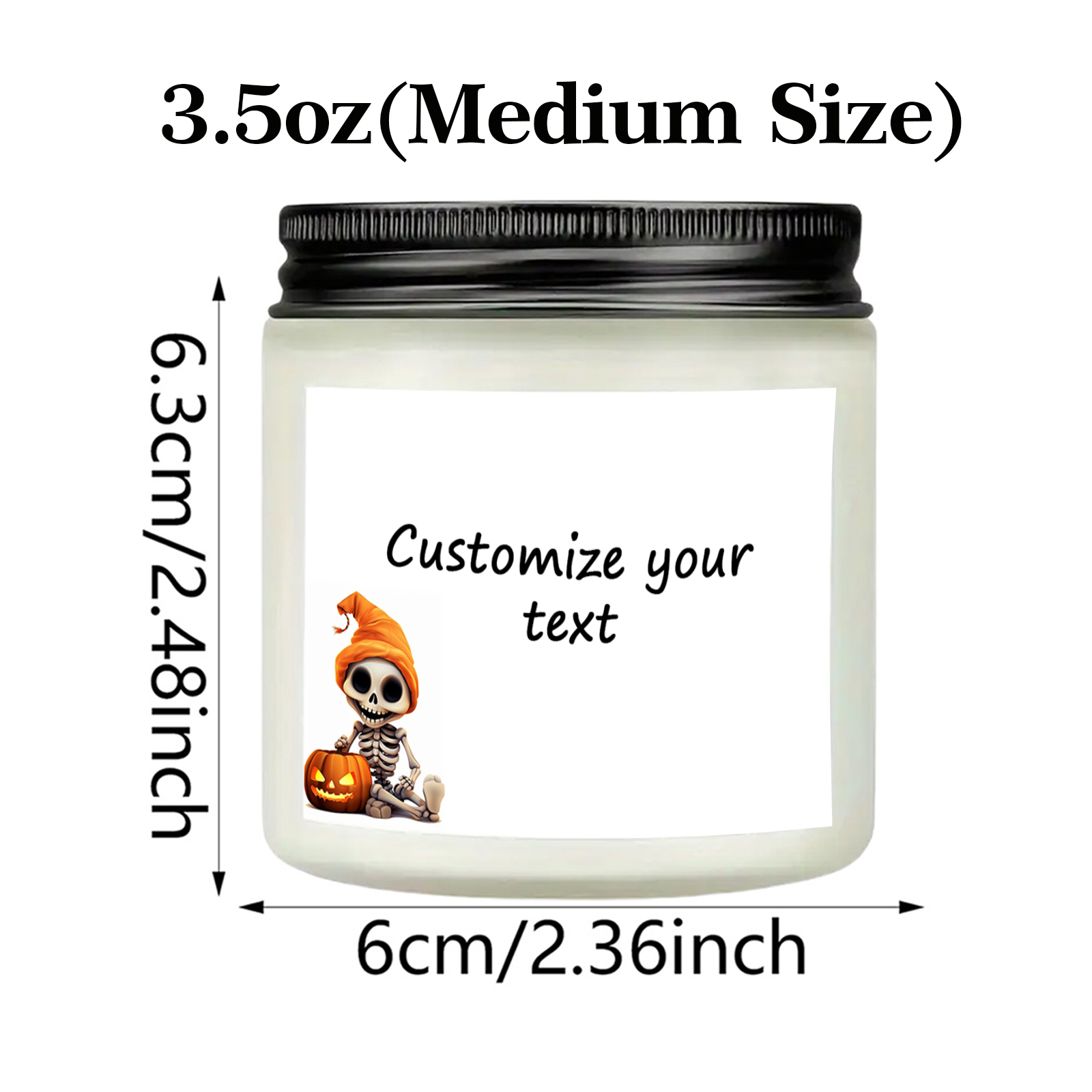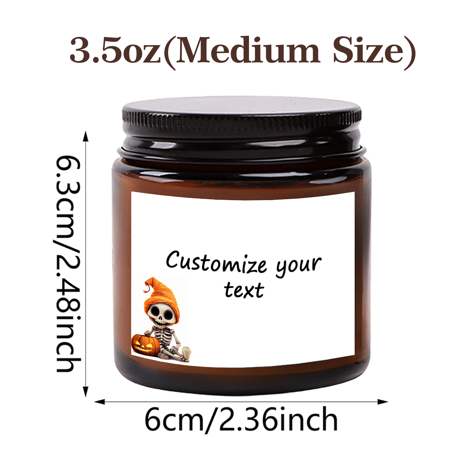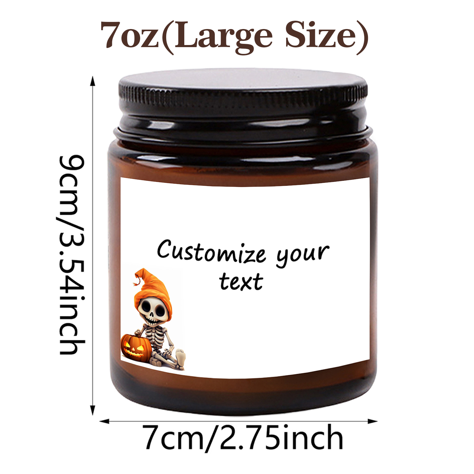Personalized Halloween Scented Candle - Custom Text with Skeleton & Pumpkin Design - Smokeless Soy Wax in Amber Jar - Unique Halloween Gift for Him/Her
