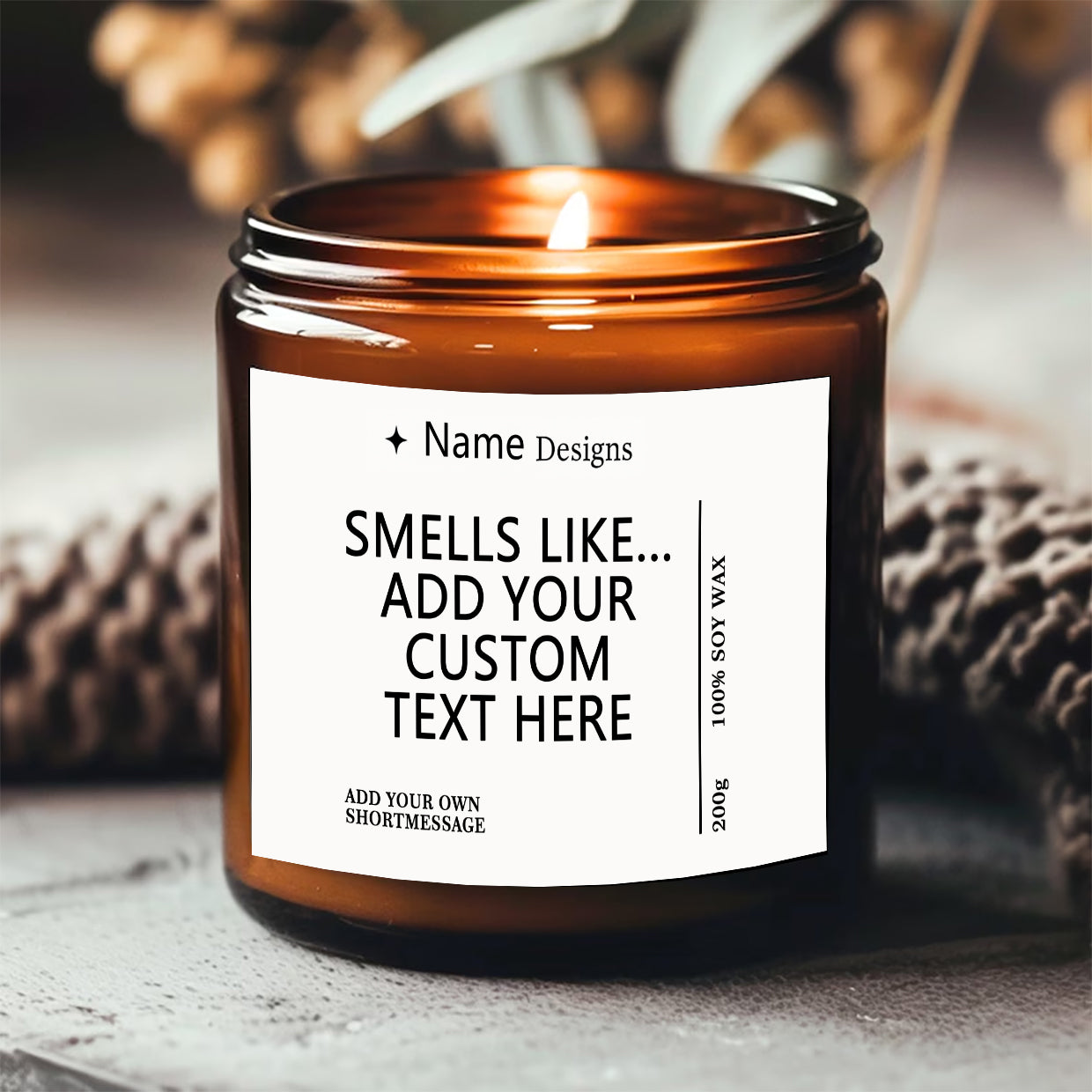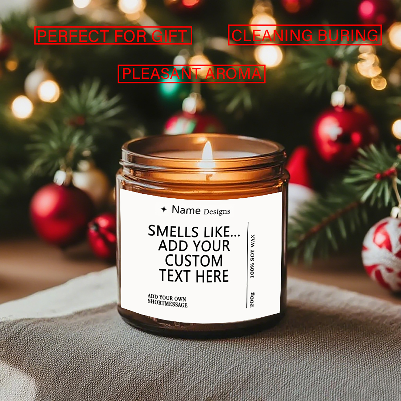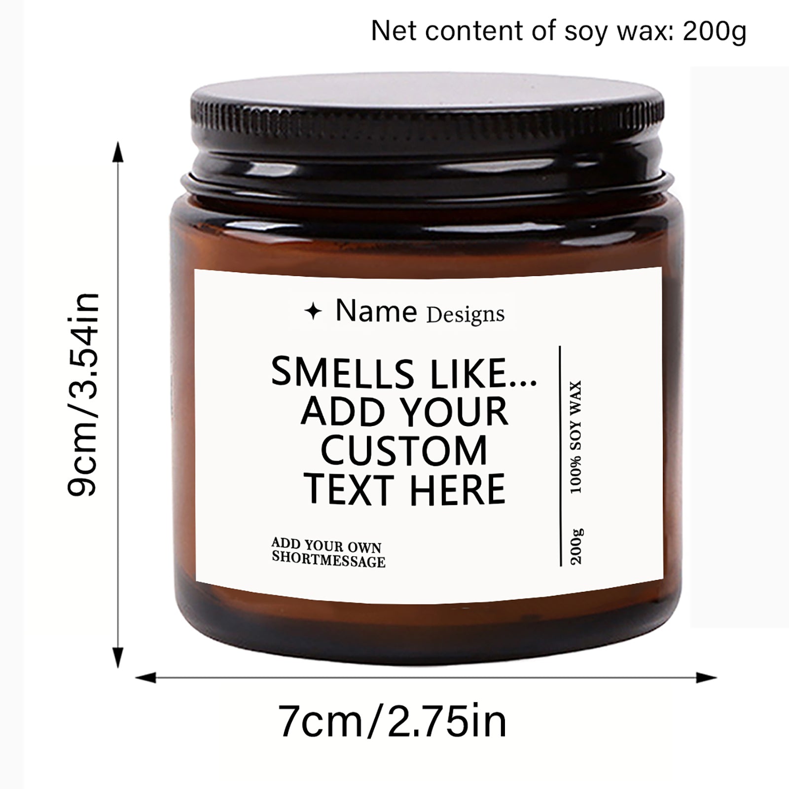 Personalized scented candles - "Smell like..." Design and custom information - Smokeless natural wax in amber jars - Offer him/her a unique holiday gift-YF