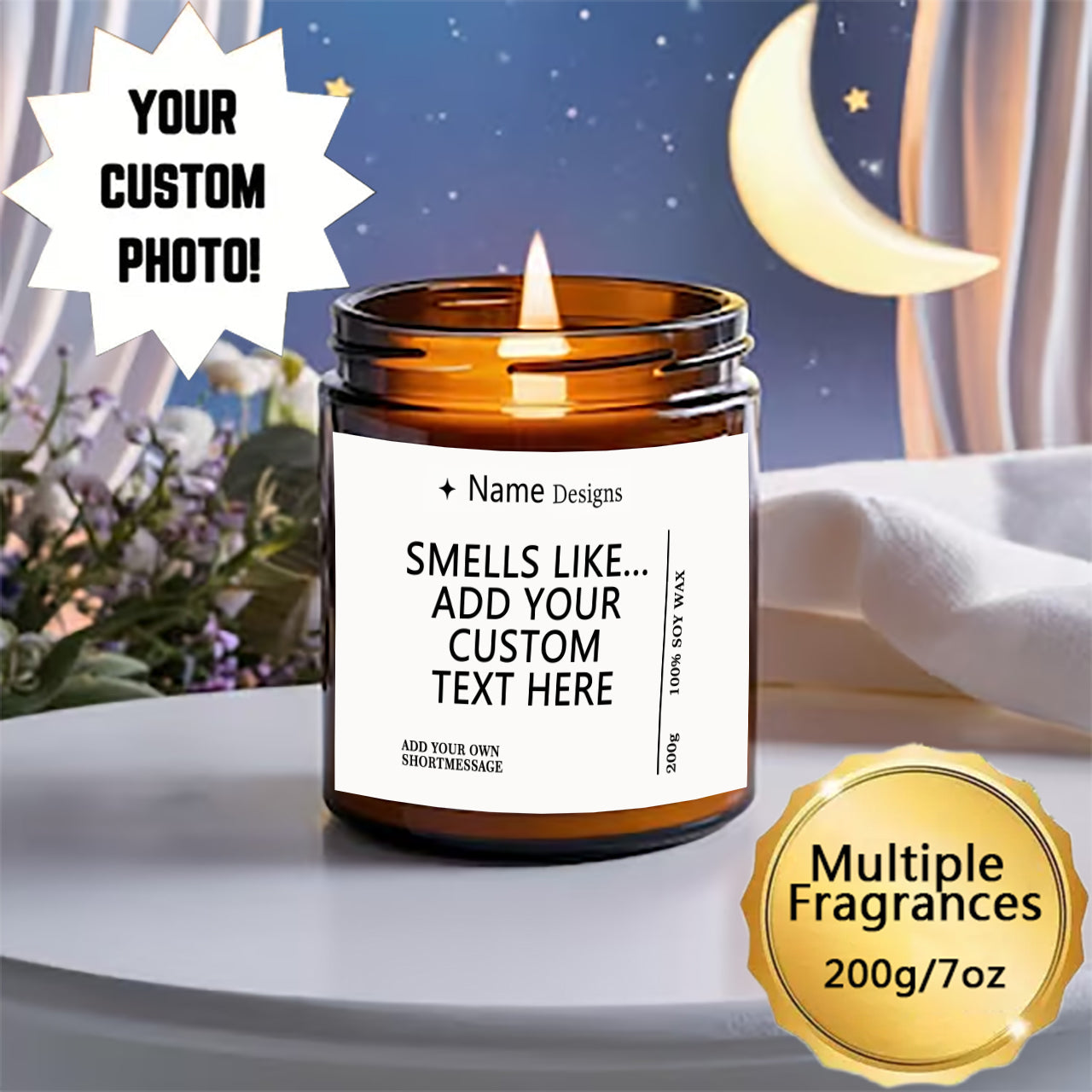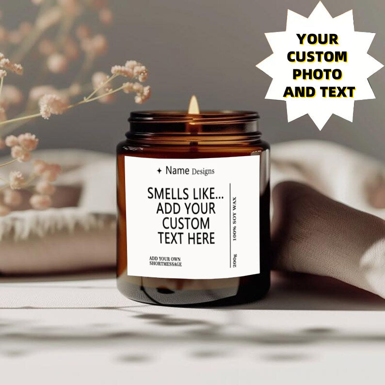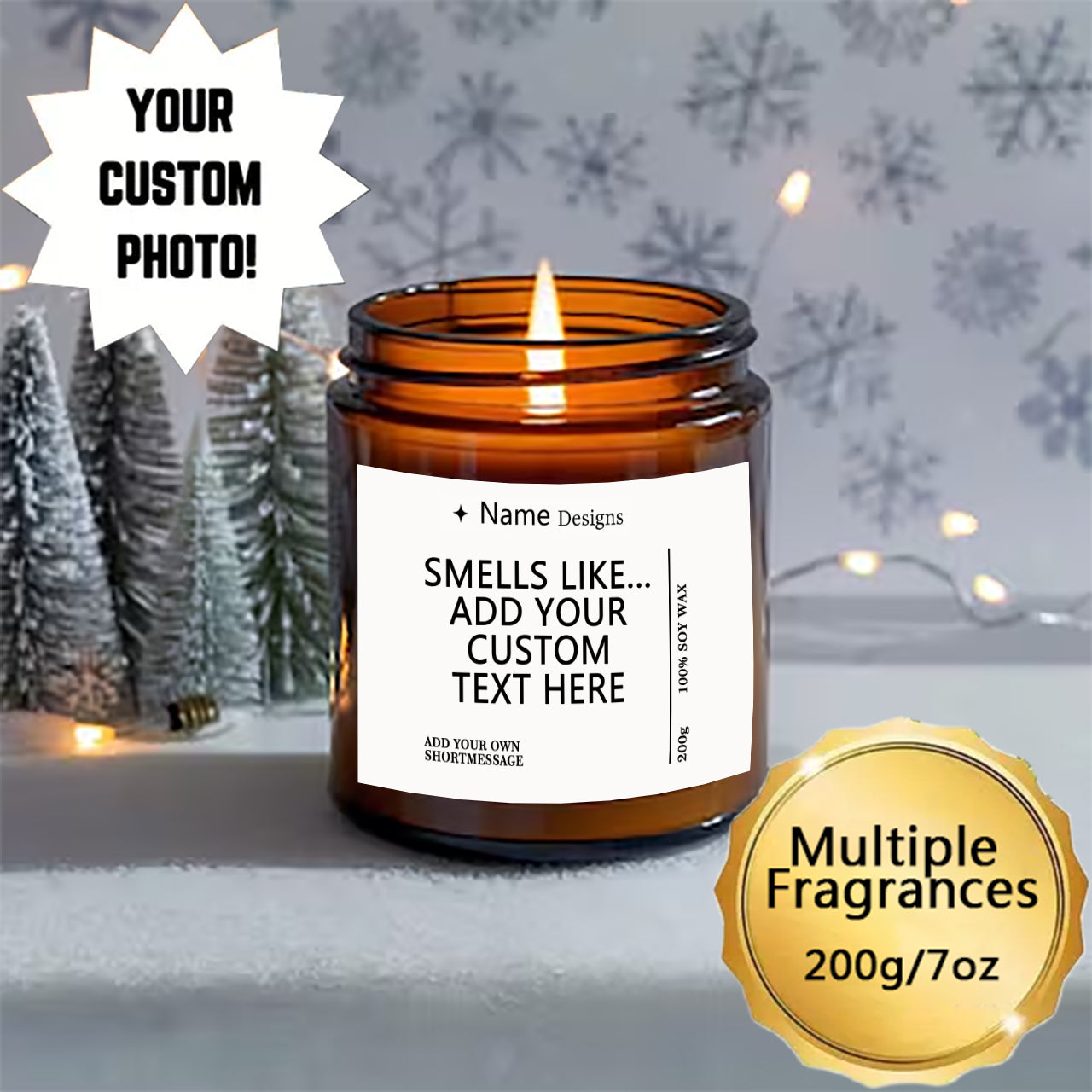 Personalized scented candles - "Smell like..." Design and custom information - Smokeless natural wax in amber jars - Offer him/her a unique holiday gift-YF