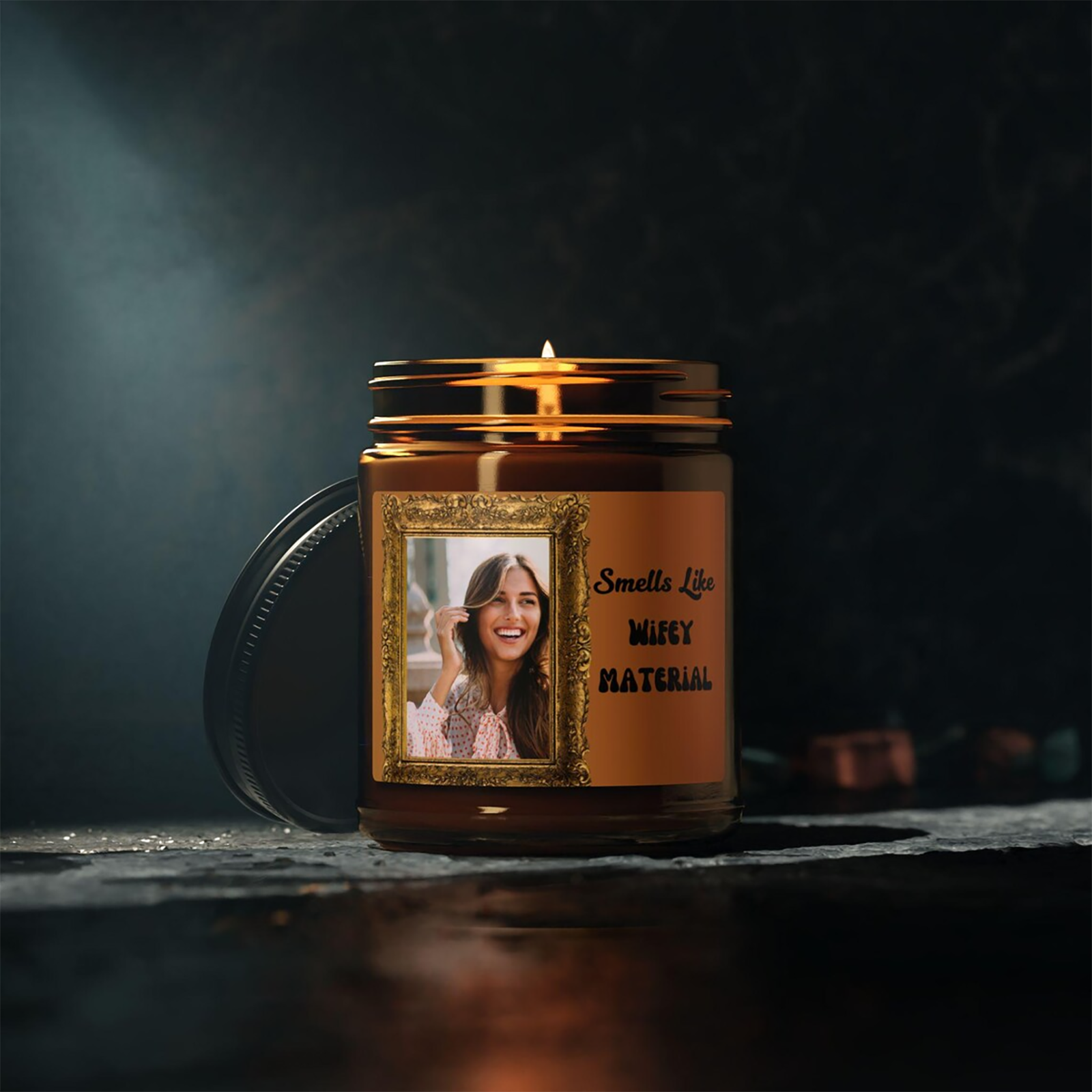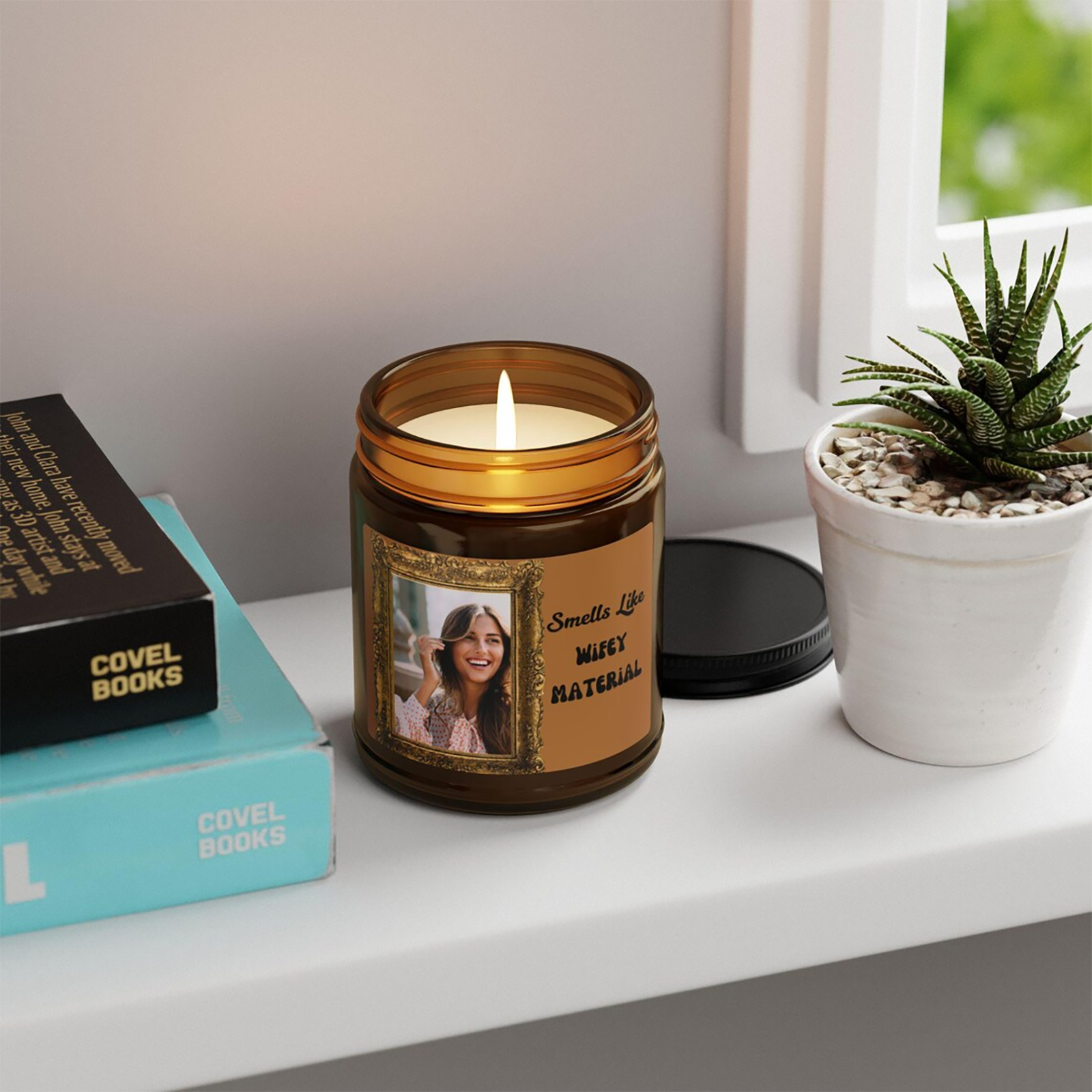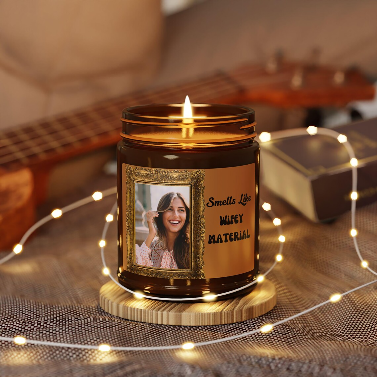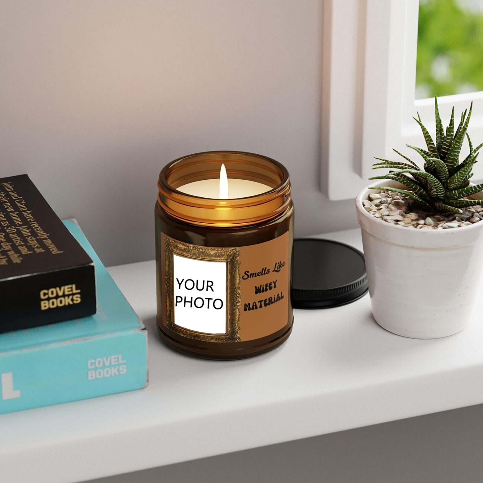 Personalized scented candle -- "Smells like soft...." Design and customize information - smokeless natural wax in amber jars - to provide him/her with a unique holiday gift-YF