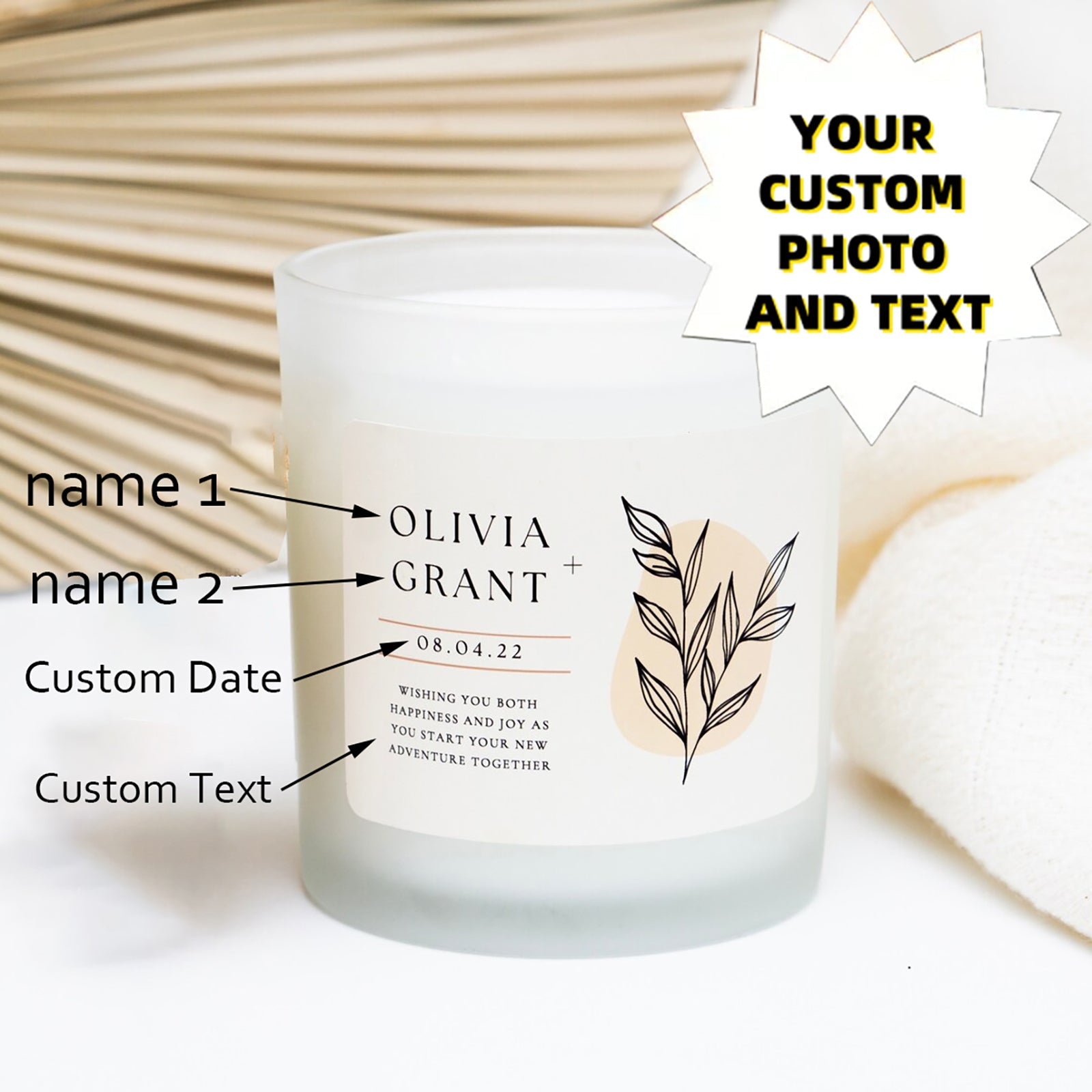 1 personalized candle - customized photos and text, transparent color can - long-lasting soy wax (burning time over 12 hours) - wedding, Valentine's Day, birthday, bridesmaid gift - personalized souvenir gift, event candle
