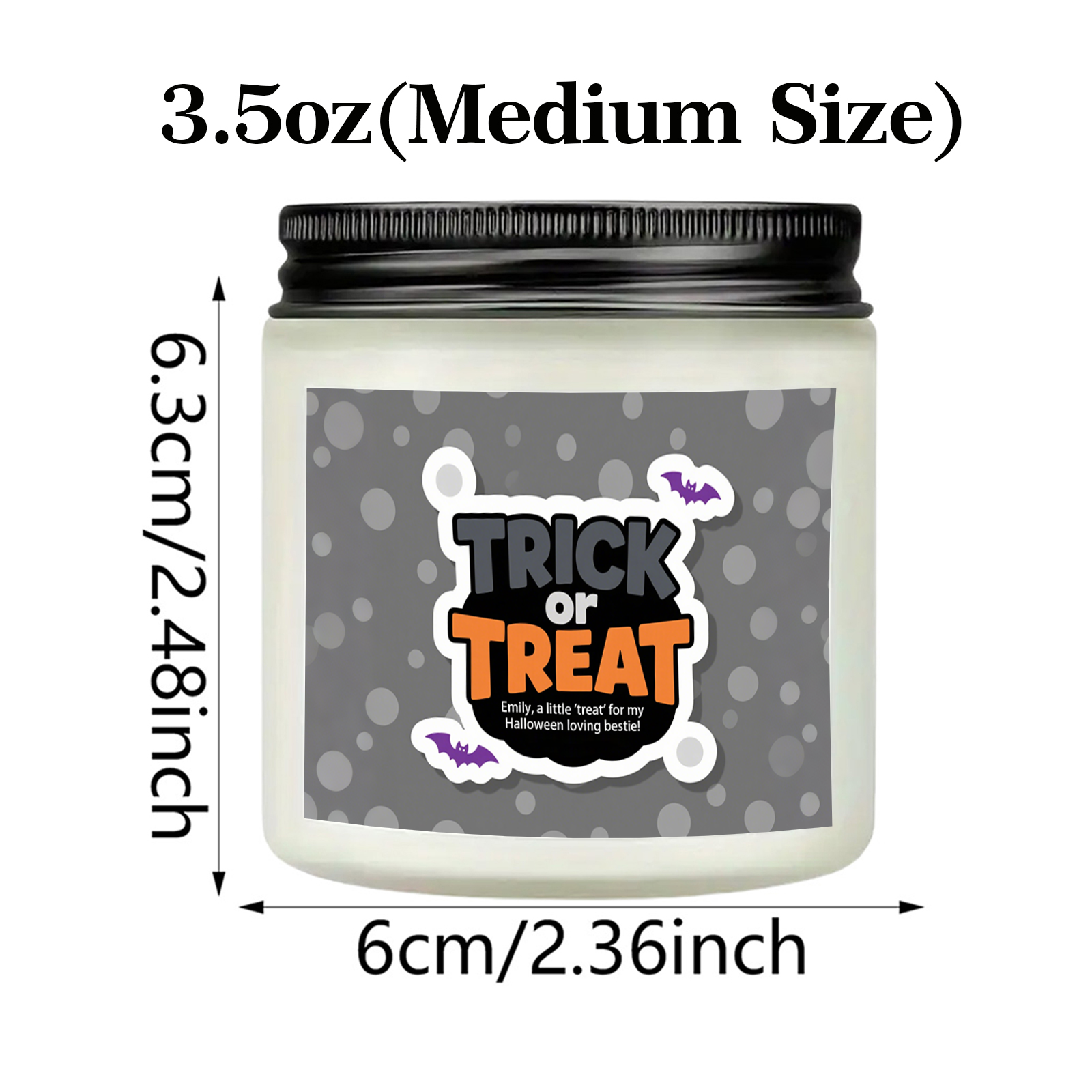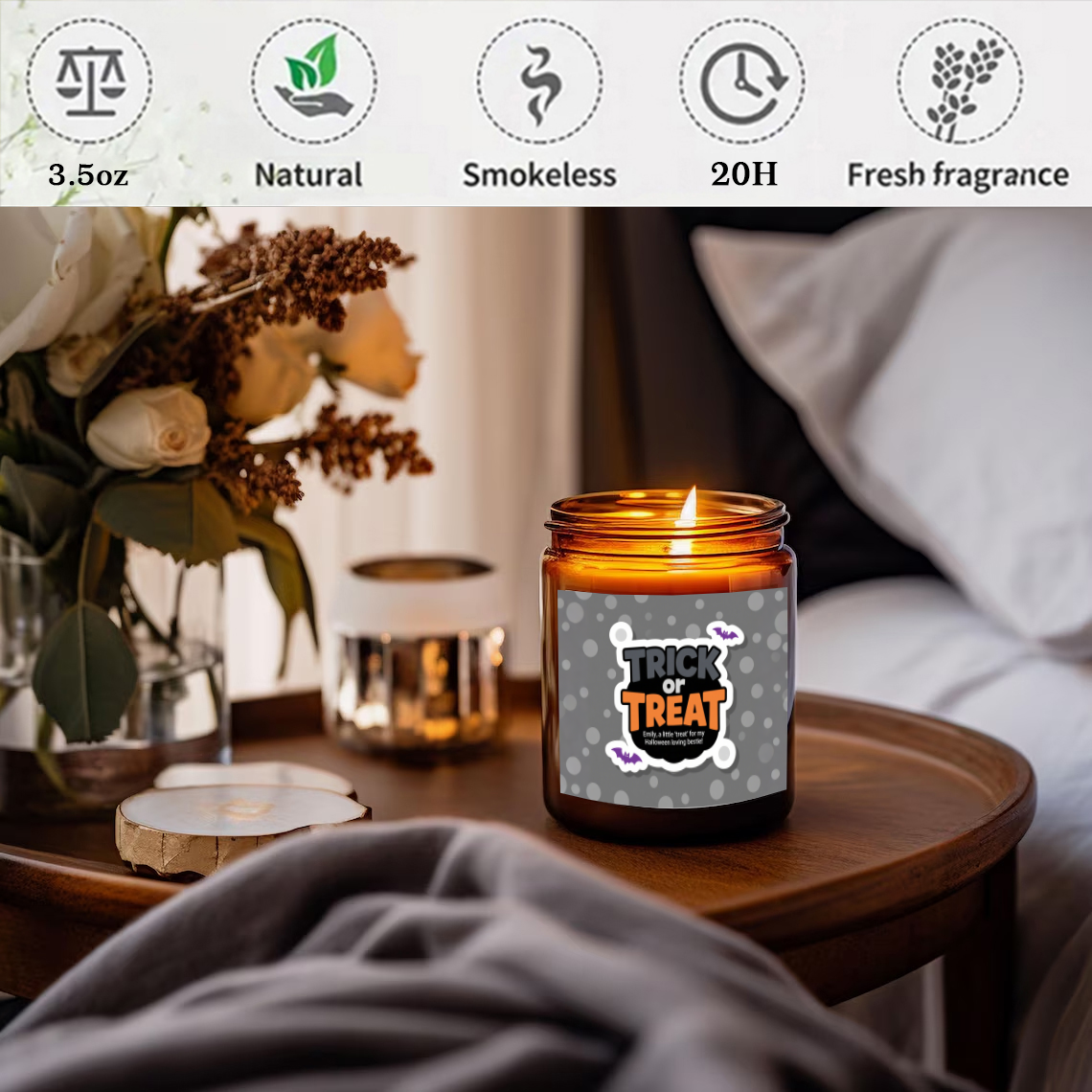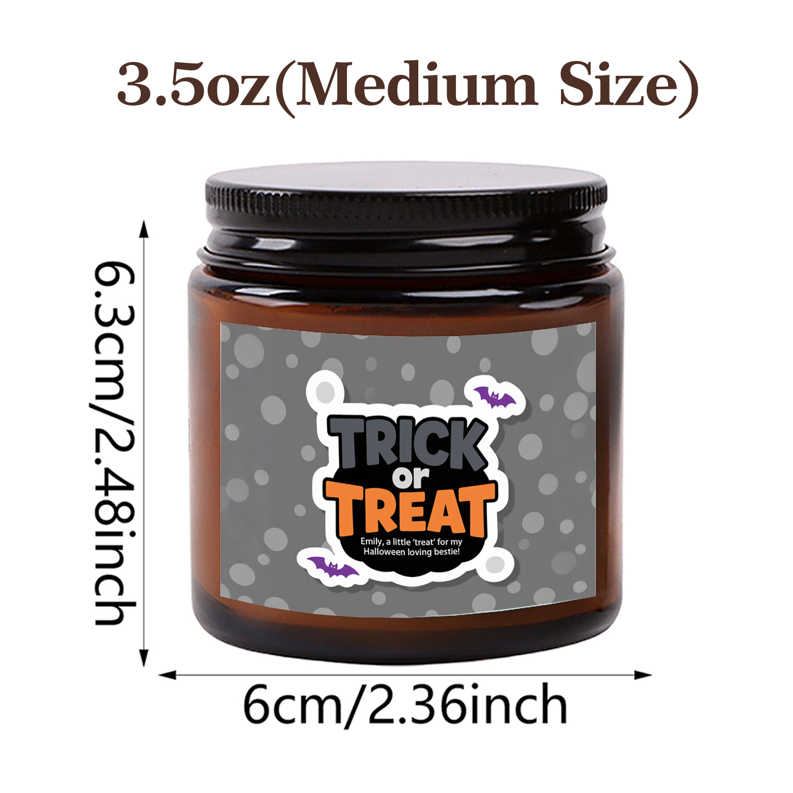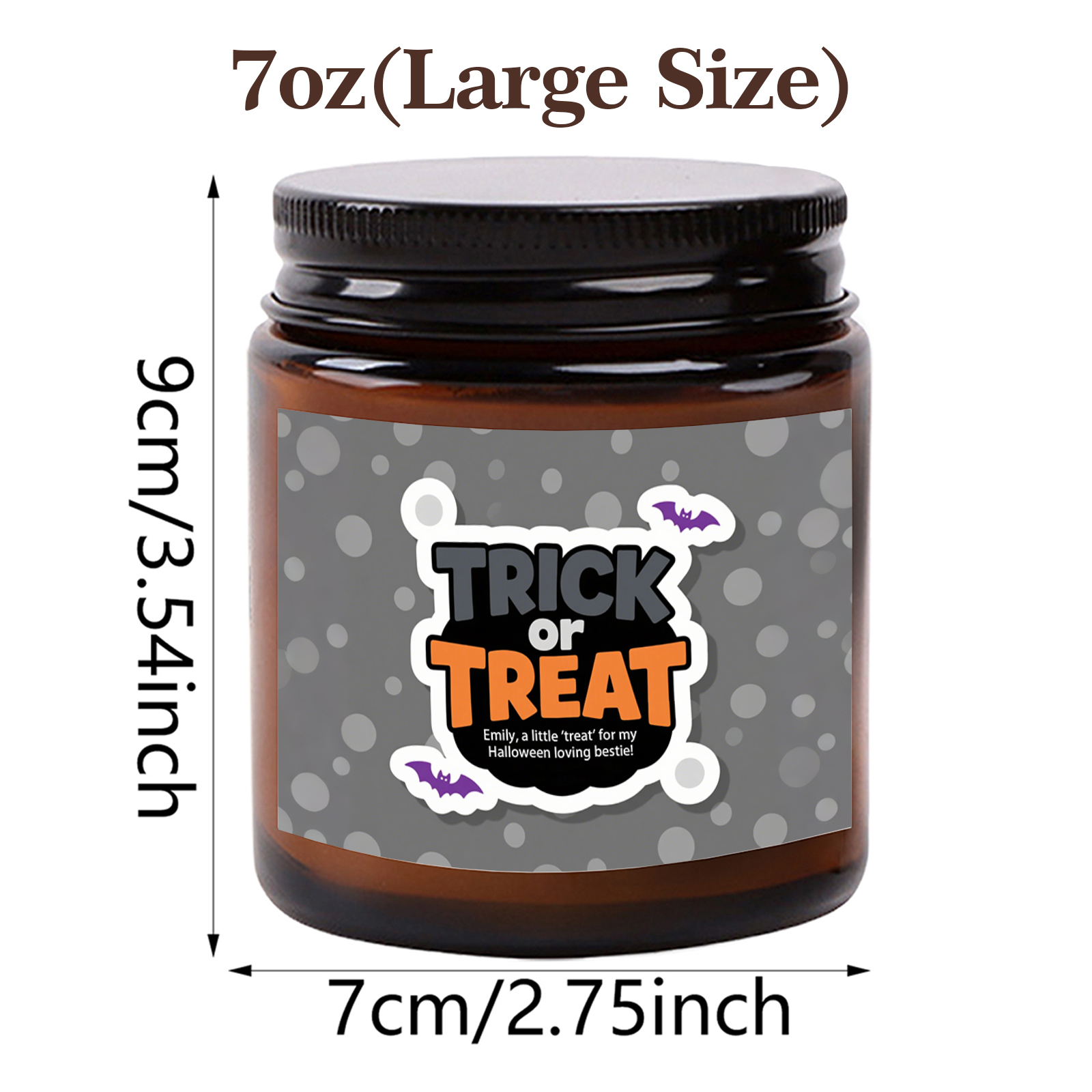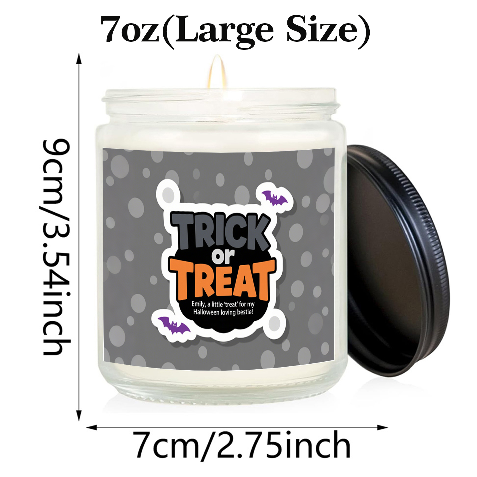Personalized Halloween Scented Candle - "Trick or Treat" Design with Custom Message - Smokeless Natural Wax in Amber Jar - Unique Halloween Gift for Him/Her