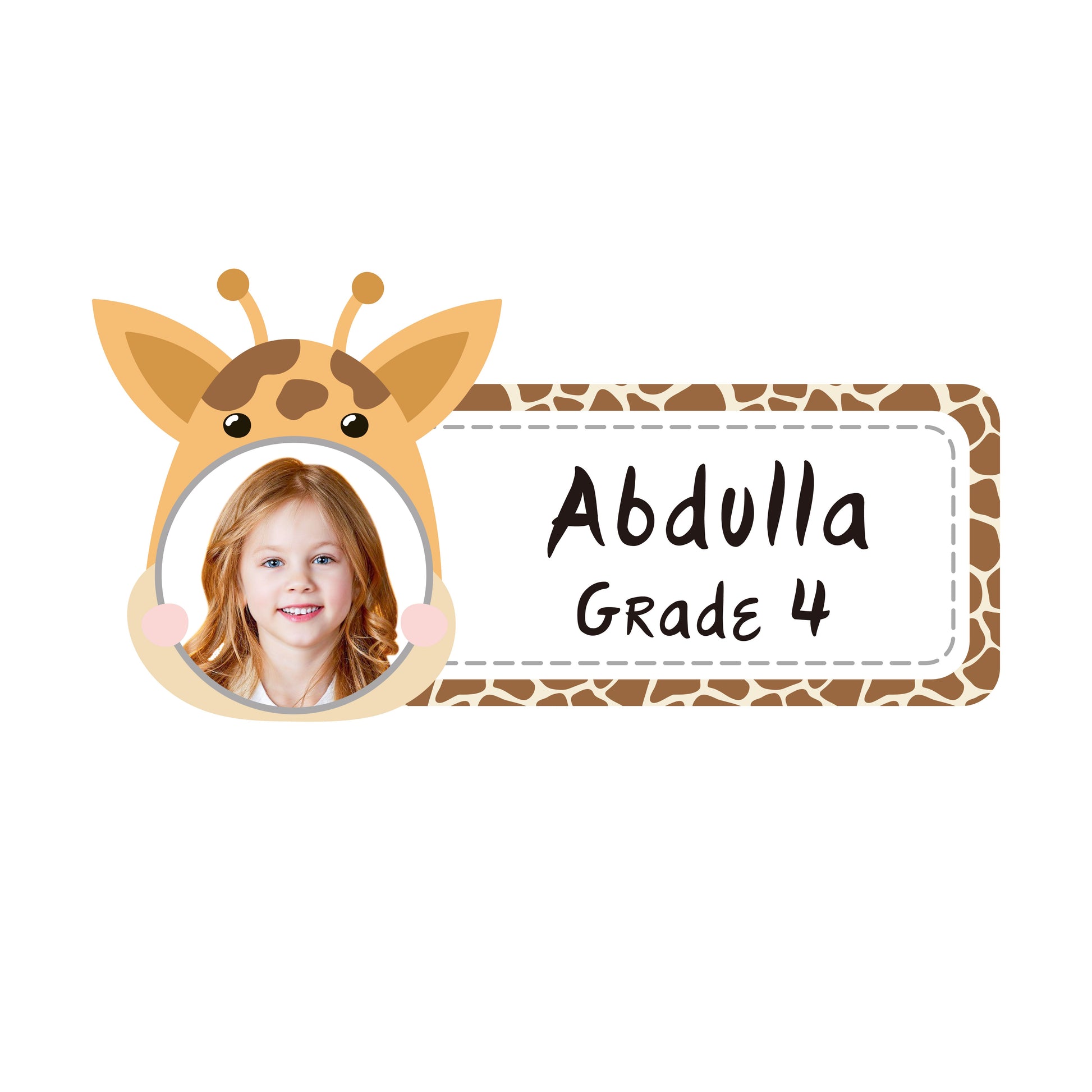 156PCS Customized Photo Name & Grade Stickers with Animal Designs (Giraffe, Tiger, etc.) - Waterproof Labels for Water Bottles, Stationery - Unique Back to School Gift for Kids' Item Identification-yy