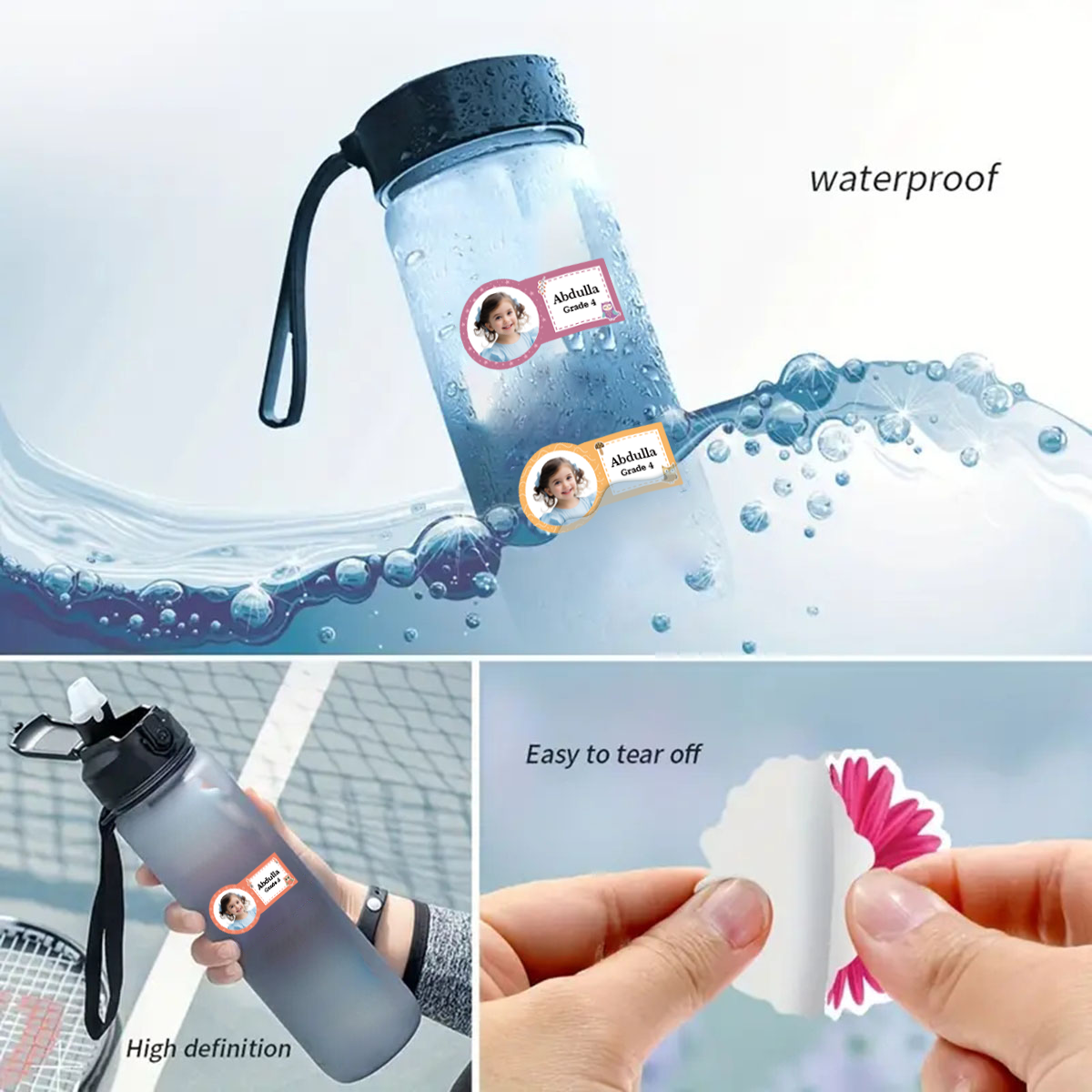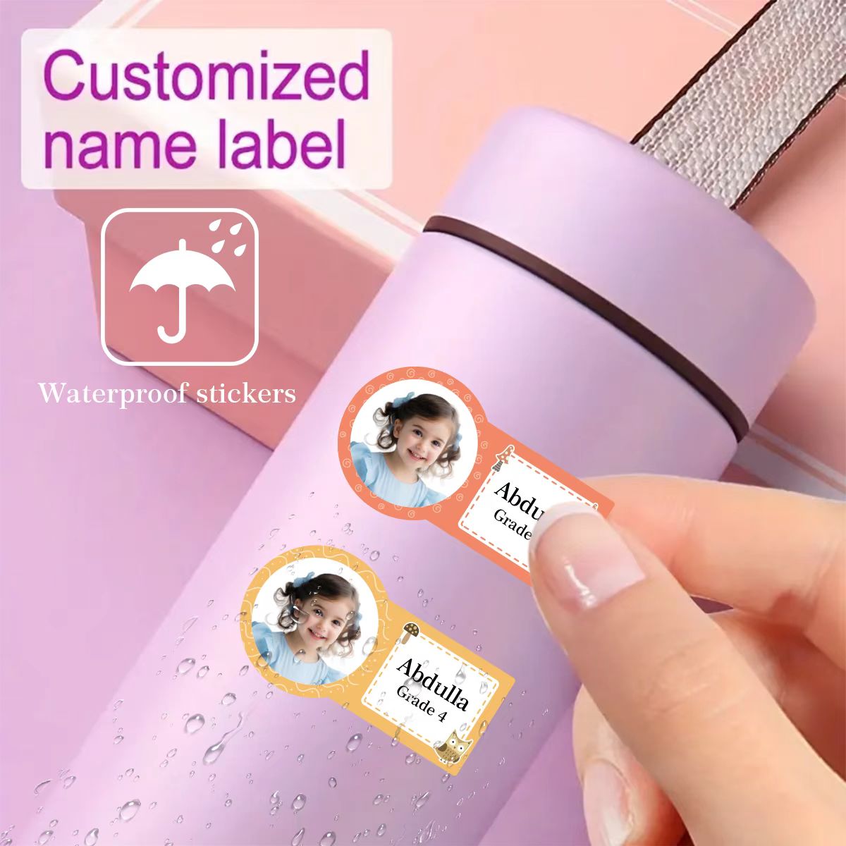 52/104pcs Personalized Photo Name Stickers - Custom Waterproof Labels with Owl Designs for Kids' School Supplies, Water Bottles - Unique Back to School Gift-yy