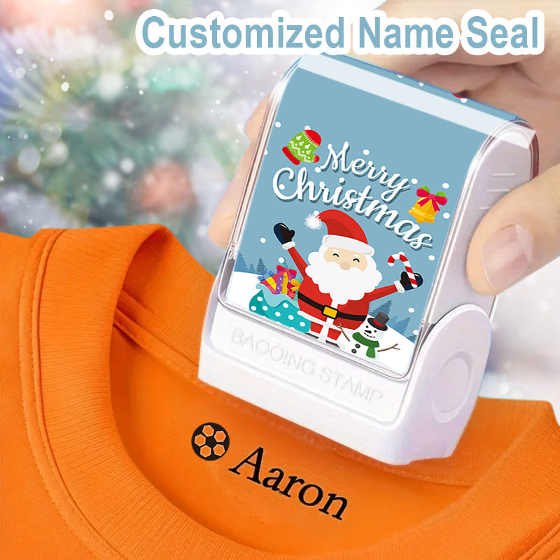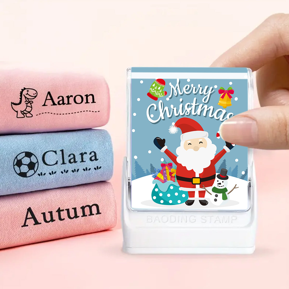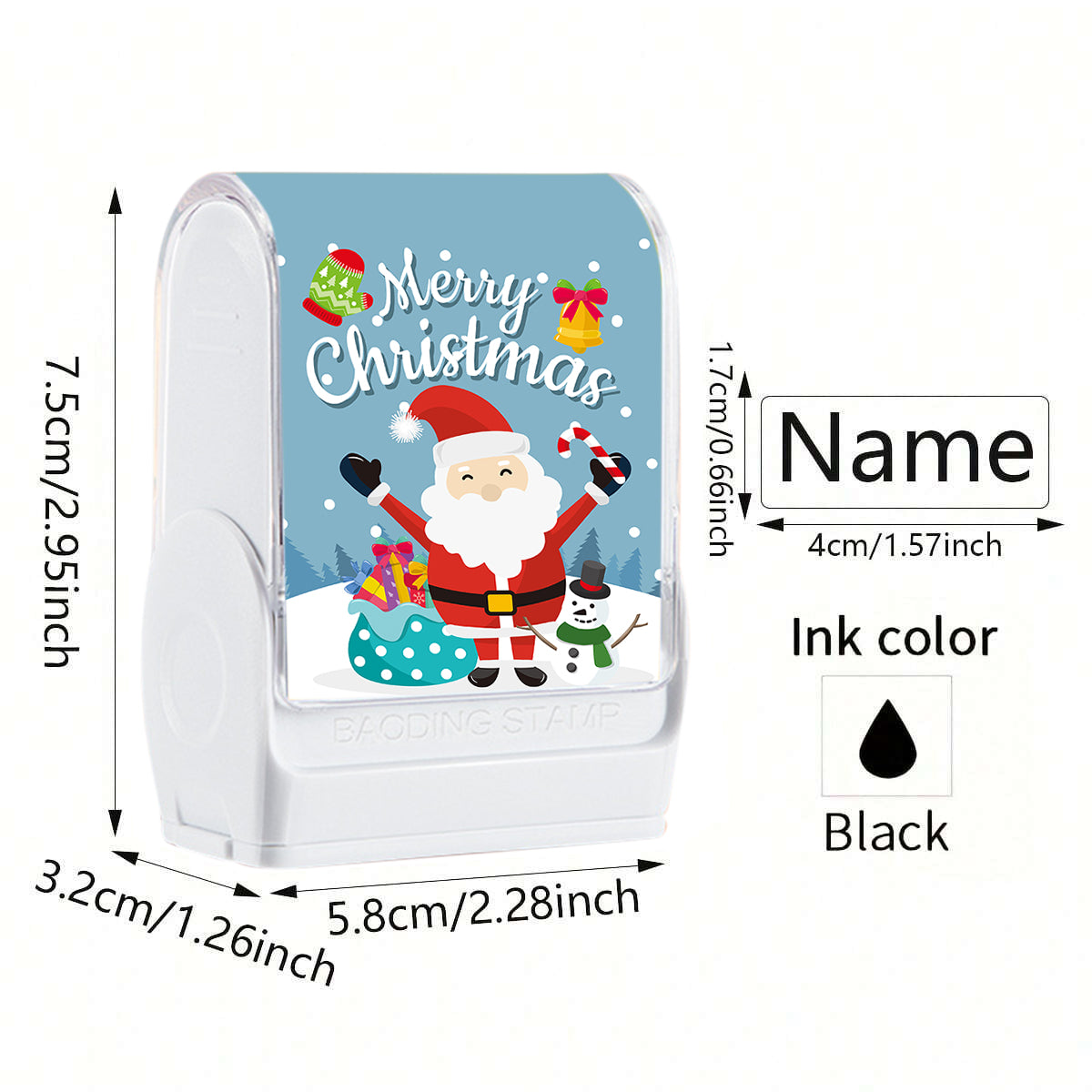 (90PCS Stickers + 1PC Stamp Set)Christmas Santa Custom Name Stamp Kit - Waterproof Self-Inking Personalized Stamp for Kids' Clothing, Stationery - DIY Gift & Item Identification Seal-yy