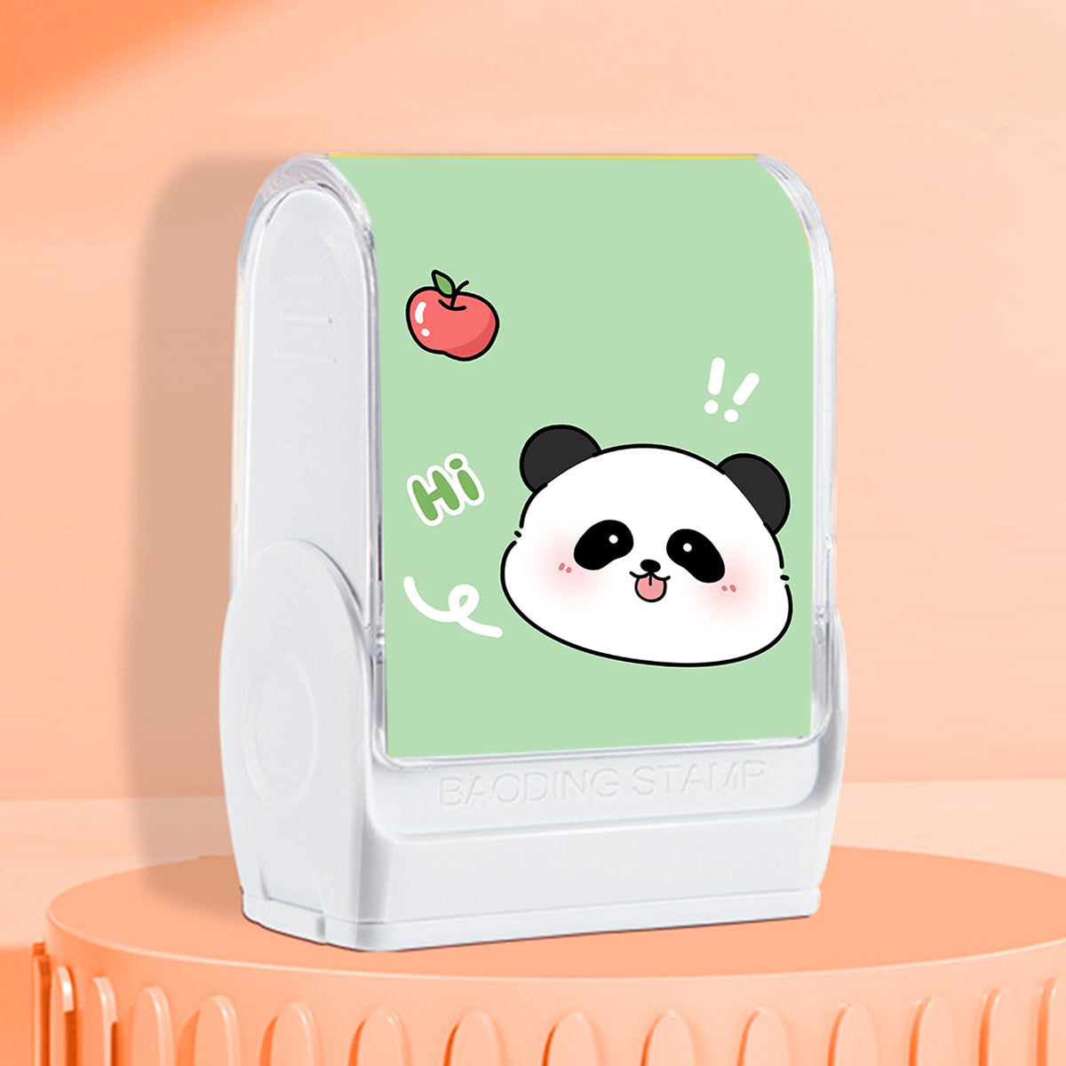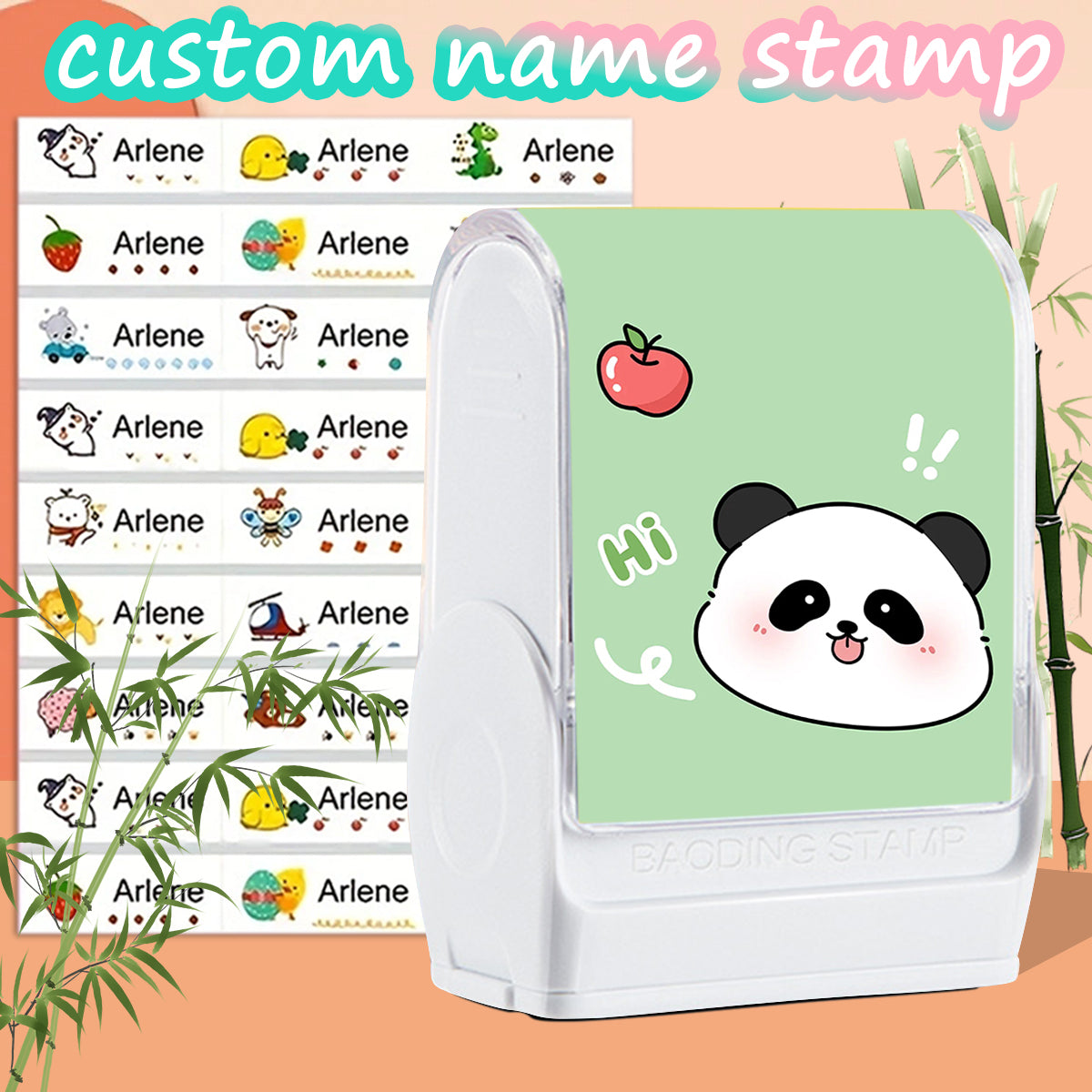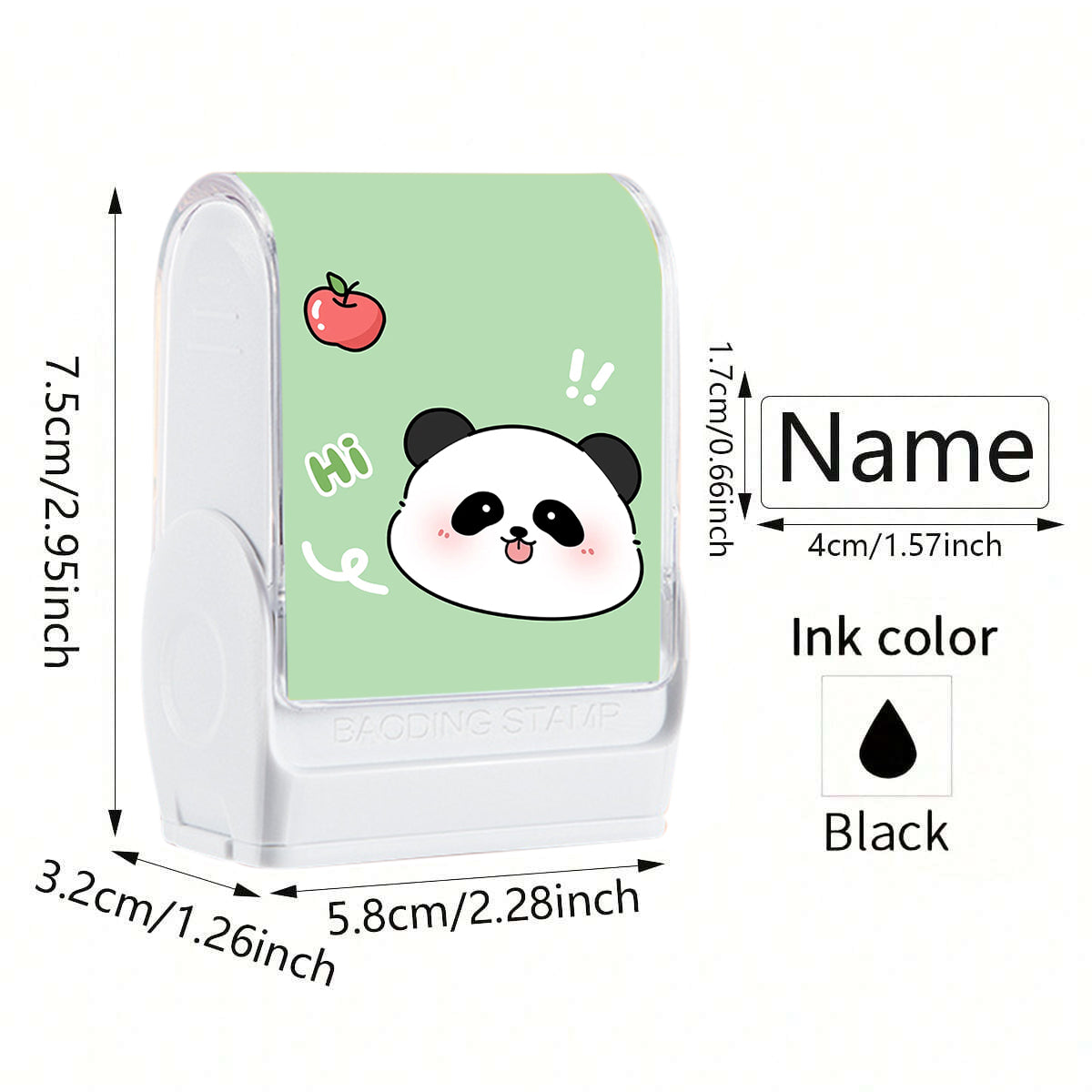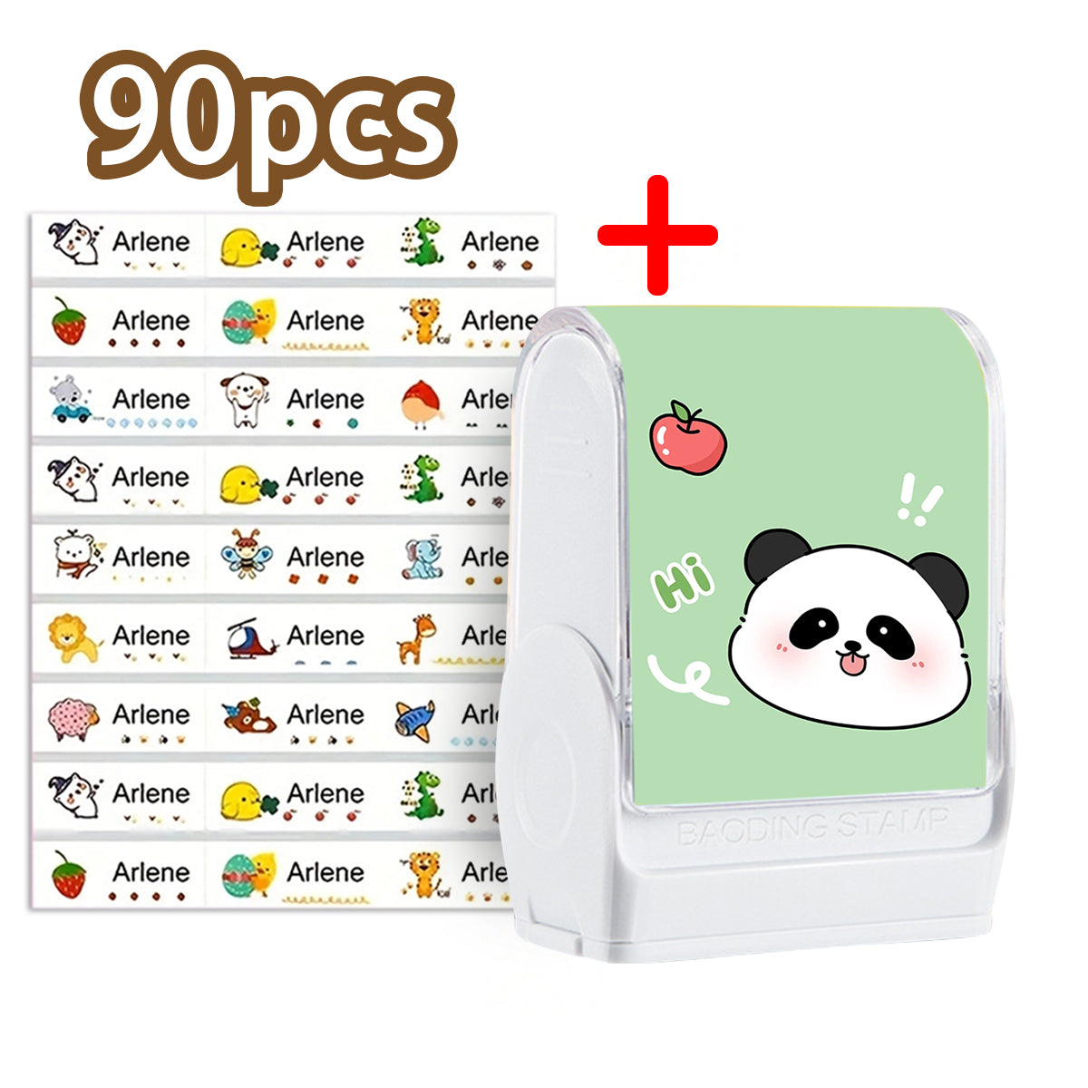 (90PCS Stickers + 1PC Stamp Set)Cute Panda Custom Name Stamp Kit - Waterproof Self-Inking Personalized Stamp for Kids' Clothing, Stationery - DIY Gift & Item Identification Seal-yy